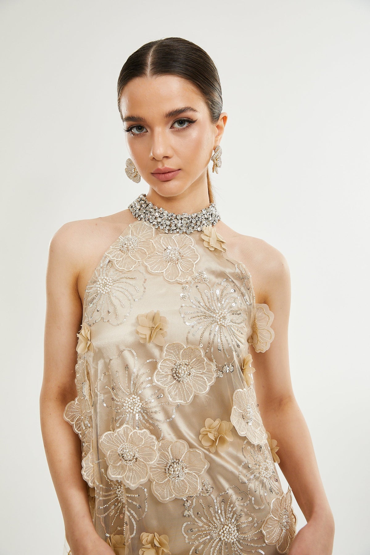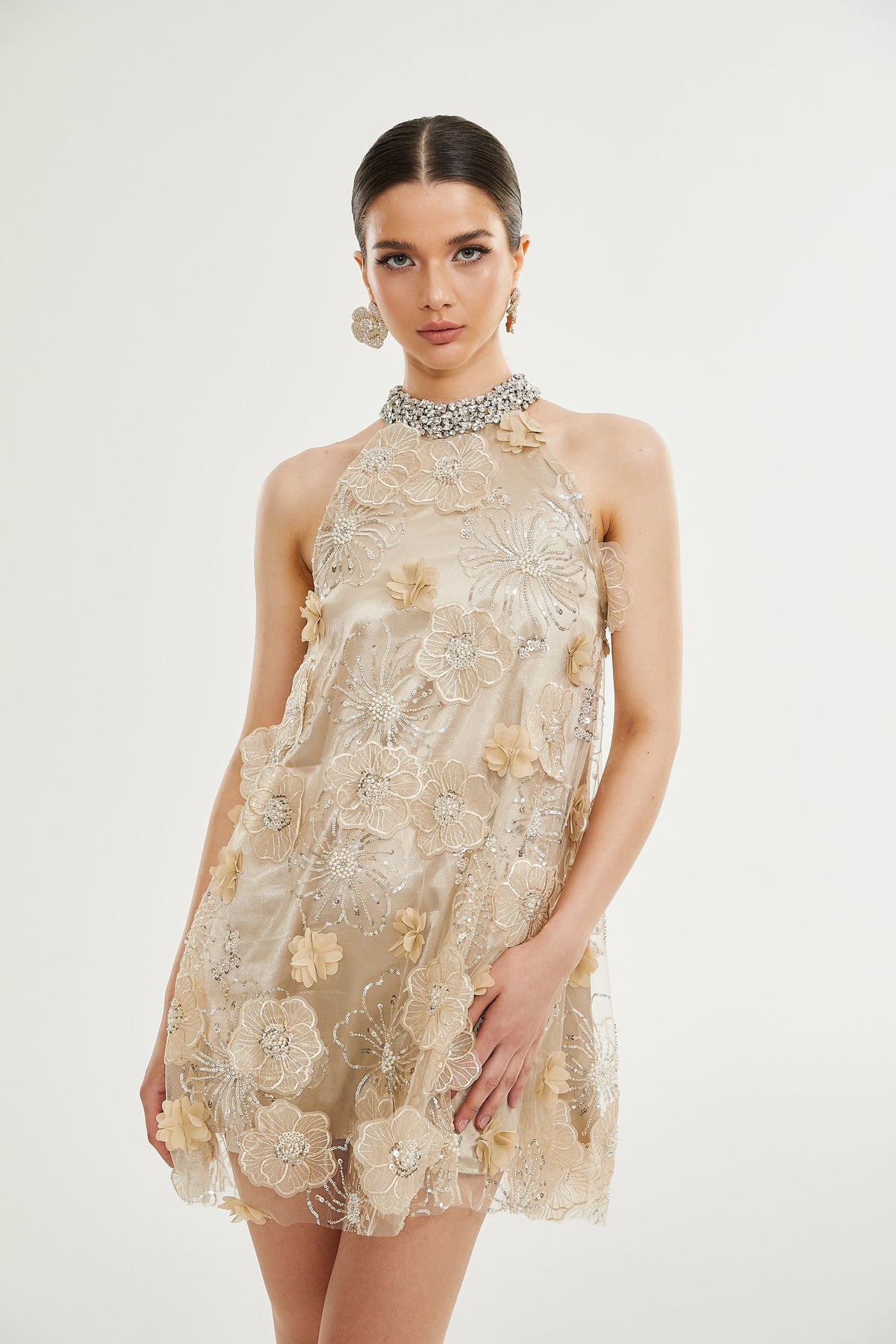 Liane Çiçek İşlemeli Mini Elbise