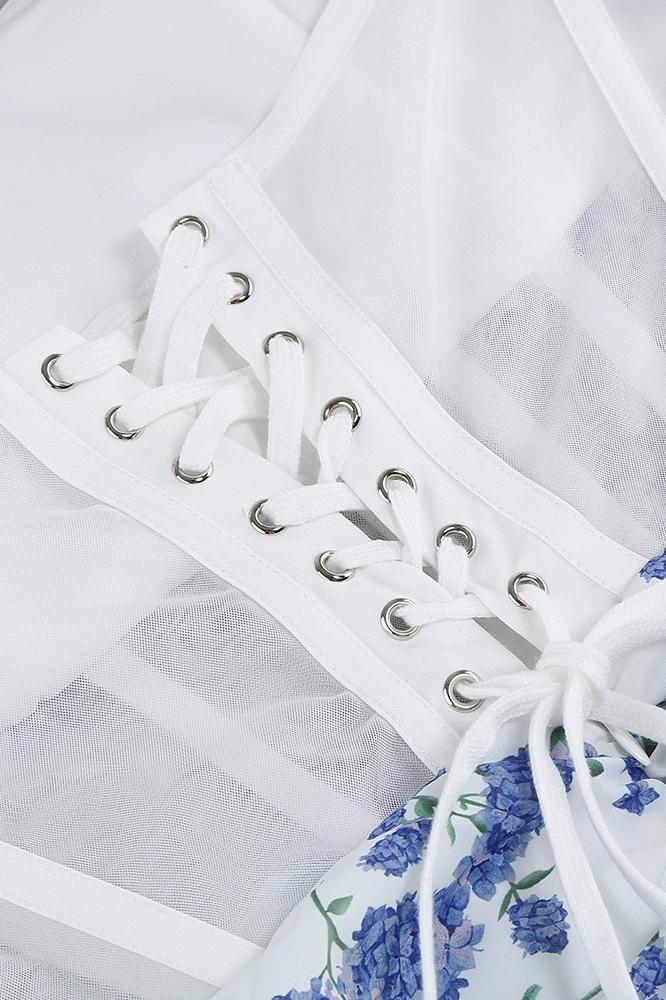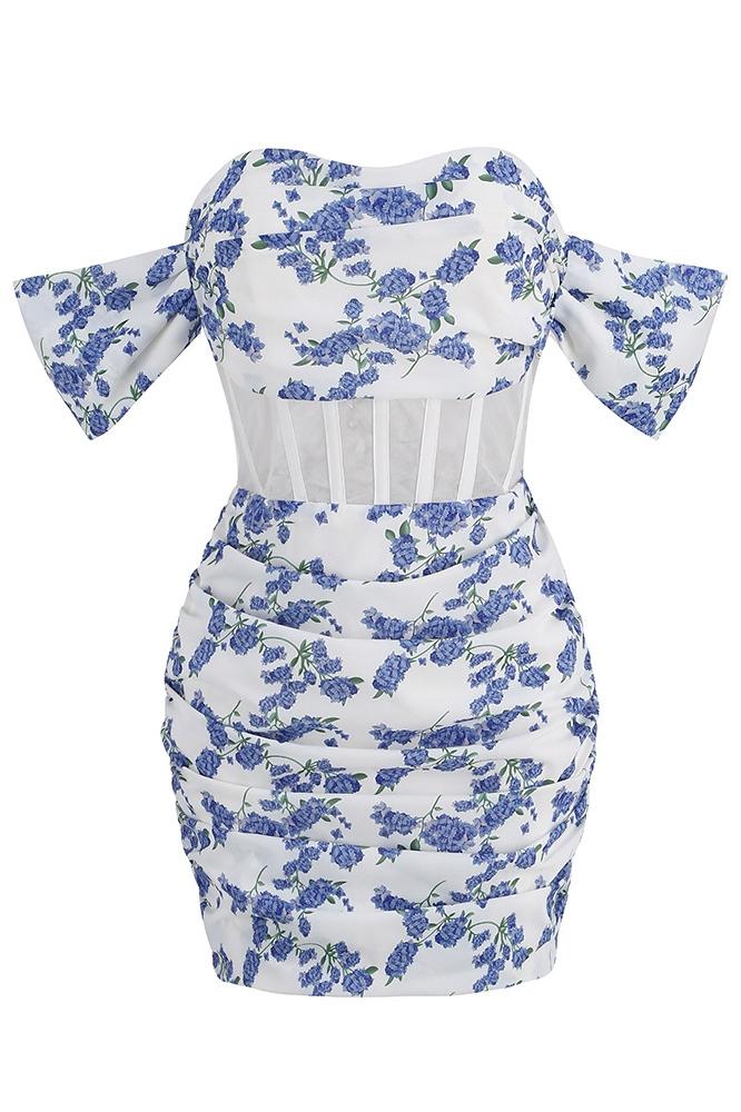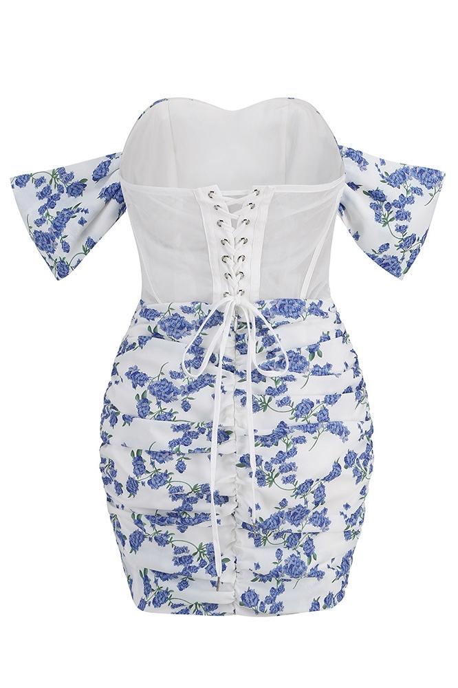 Odelette Baskılı Omuzu Açık Korse Mini Elbise