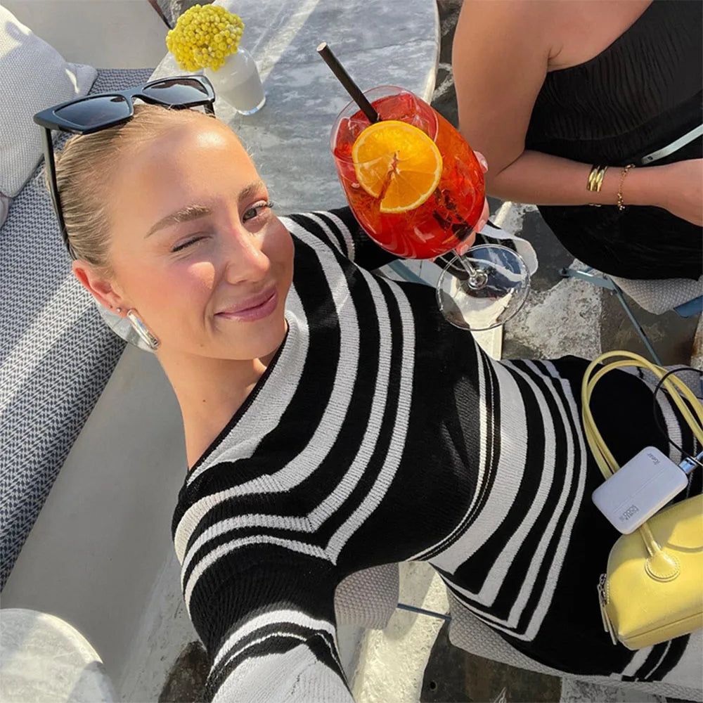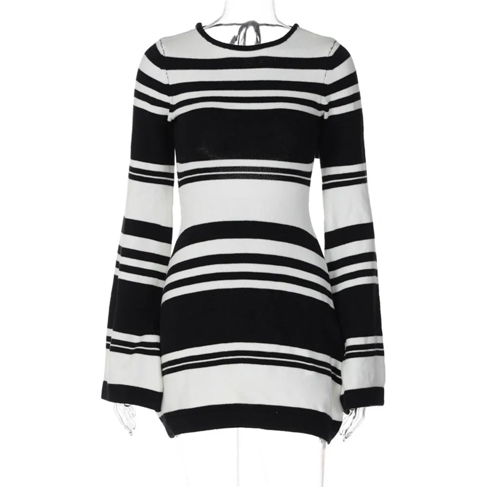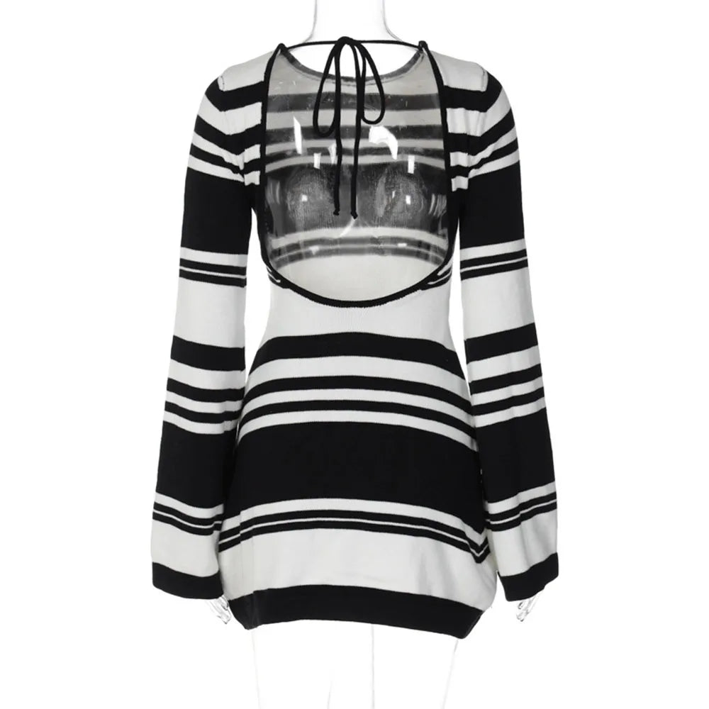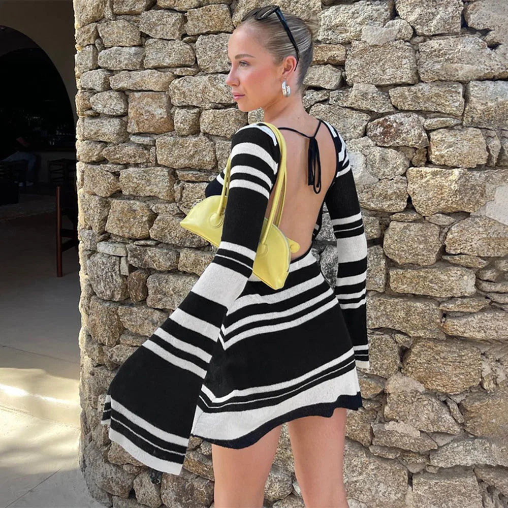 Sırt Detay Çizgili Mini Elbise