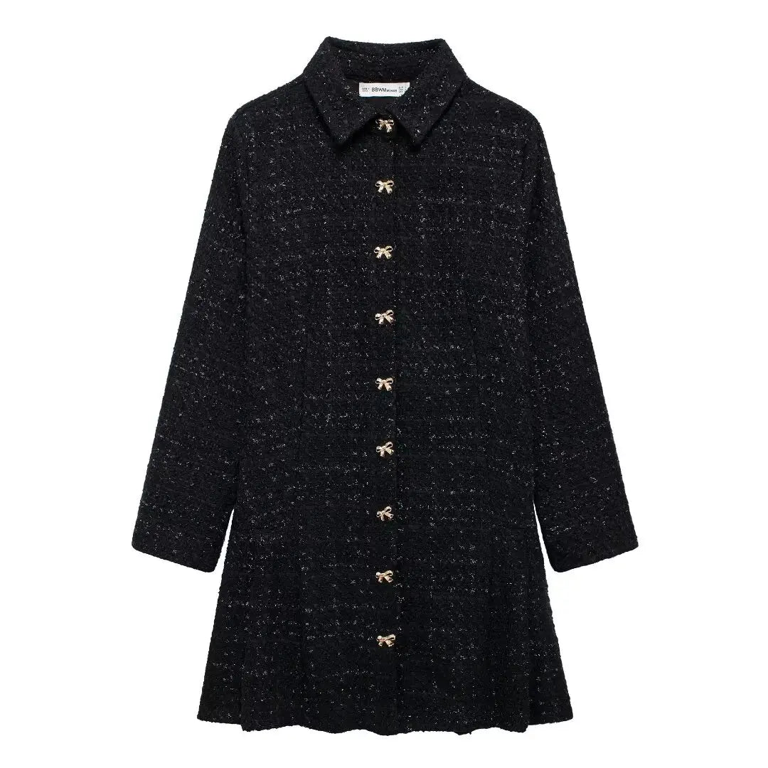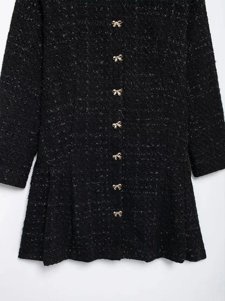 Fiyonk Düğmeli Tüvit Mini Elbise