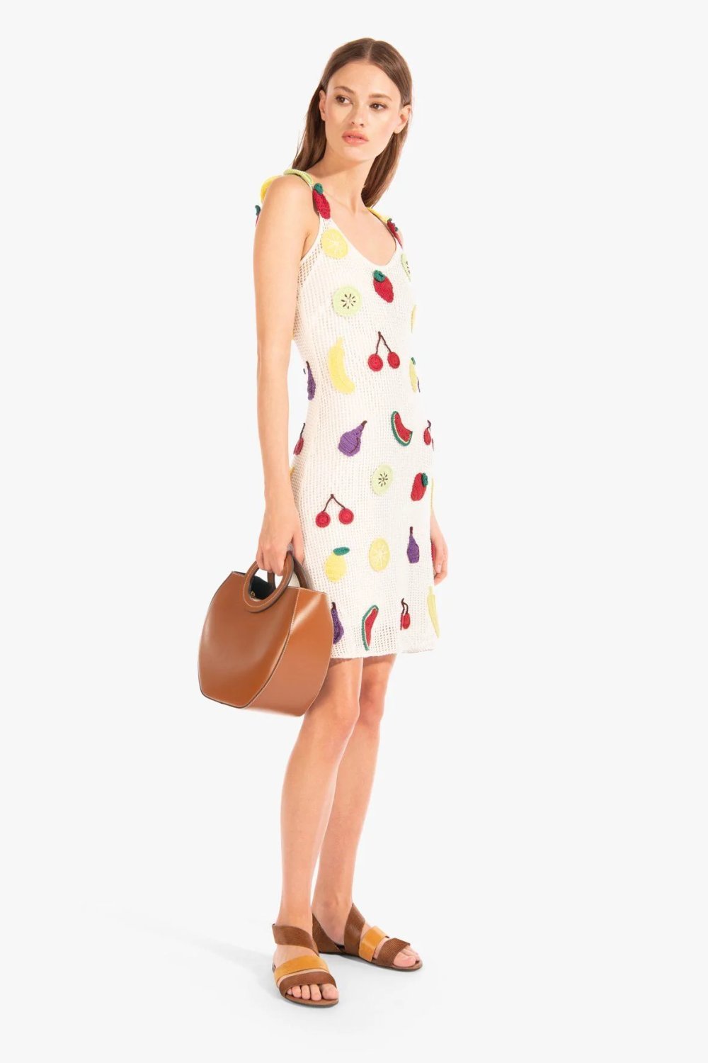 Via Fruit Patchwork Tığ İşi Mini Elbise