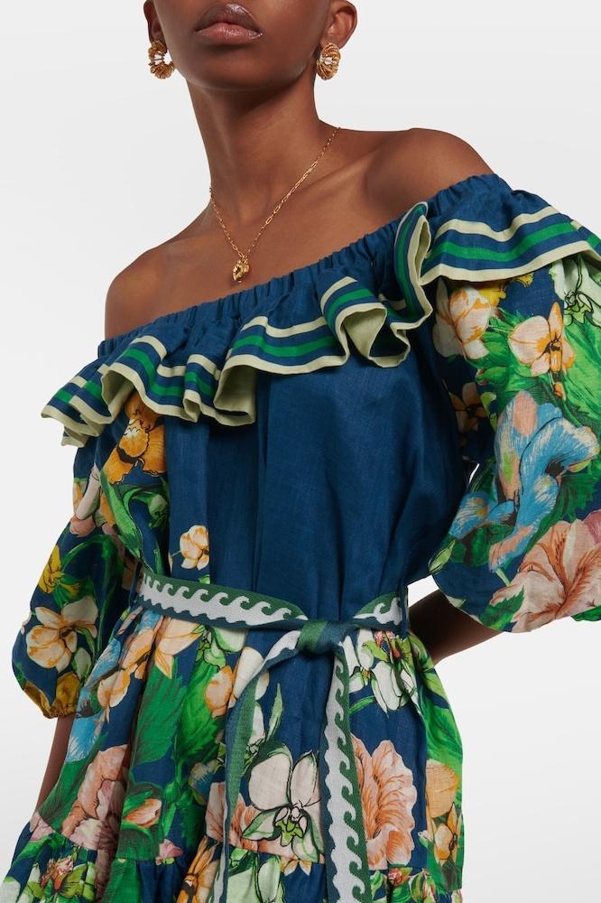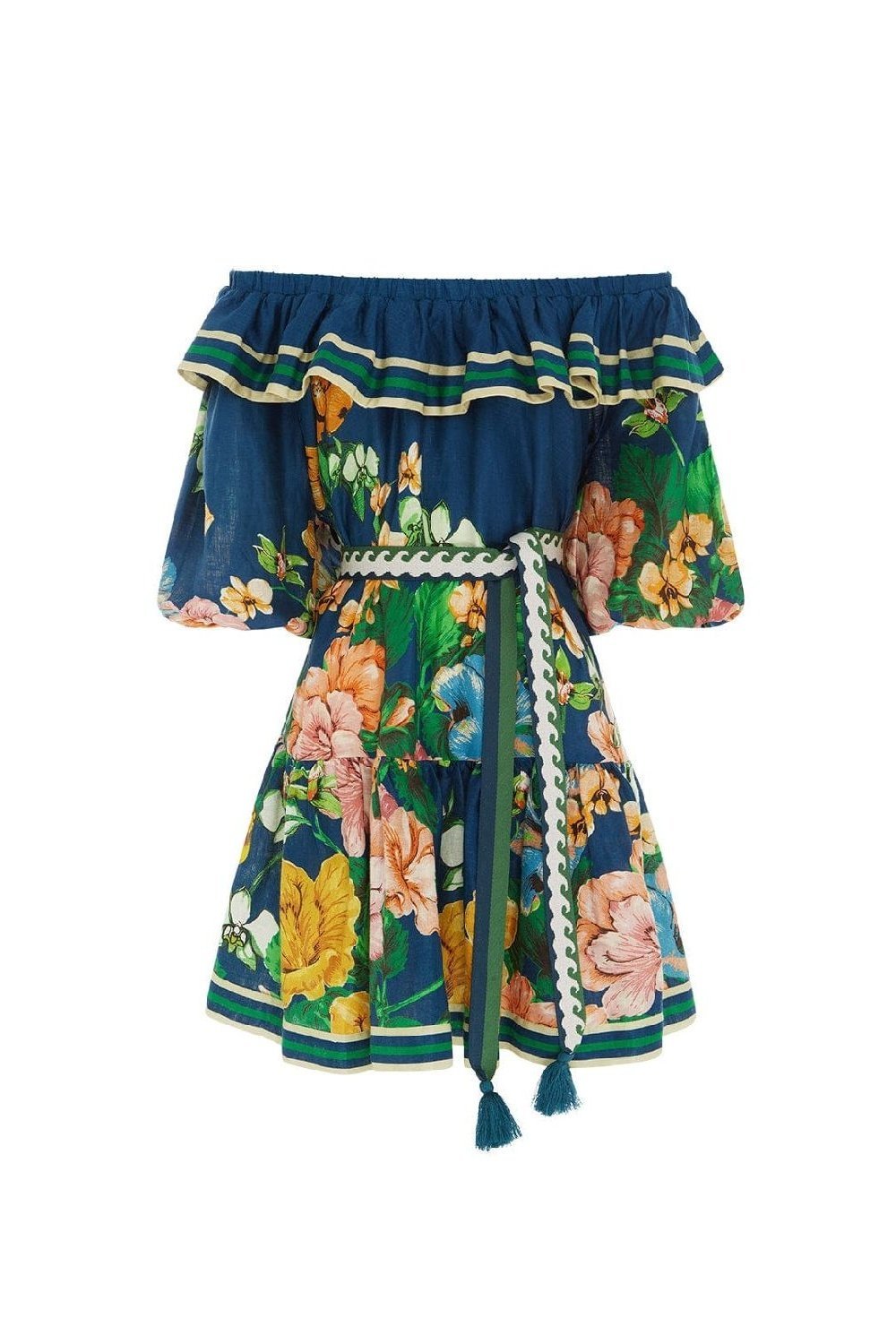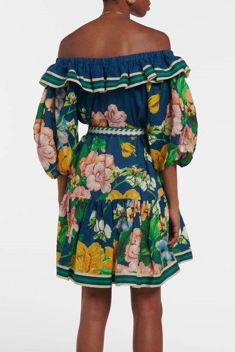 Yolanda Omuzu Açık Çiçek Baskılı Mini Elbise
