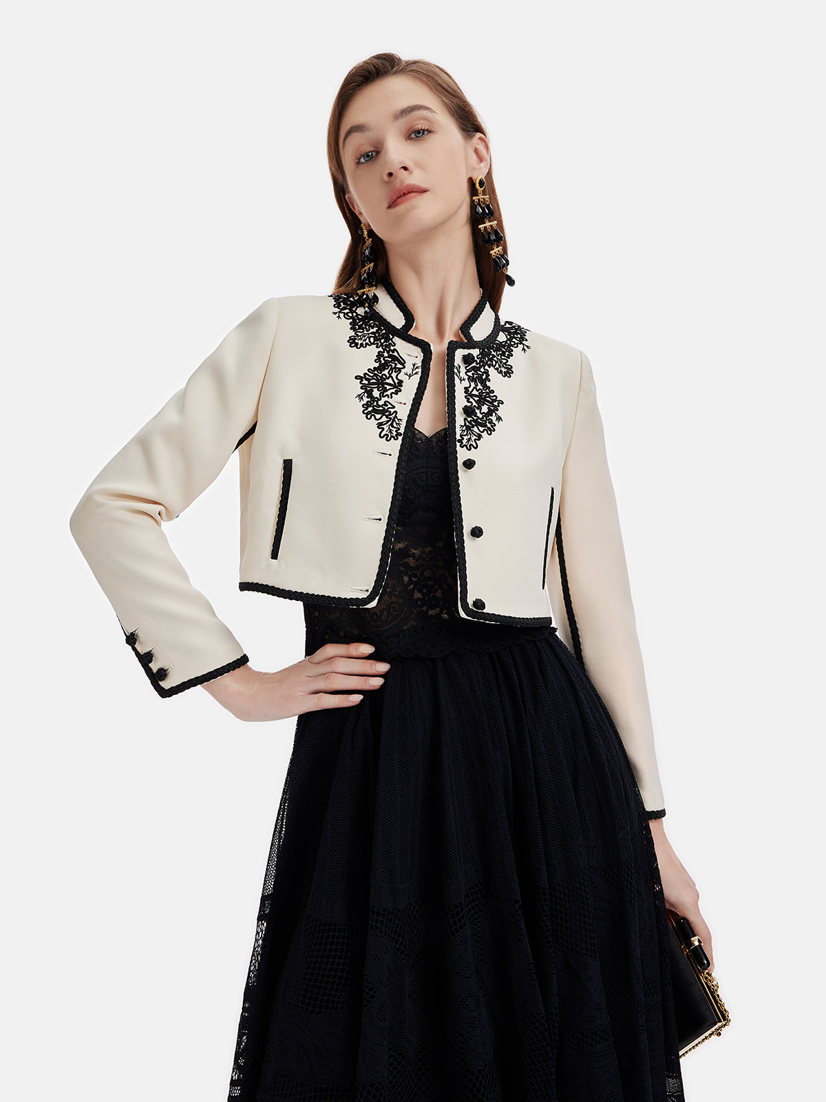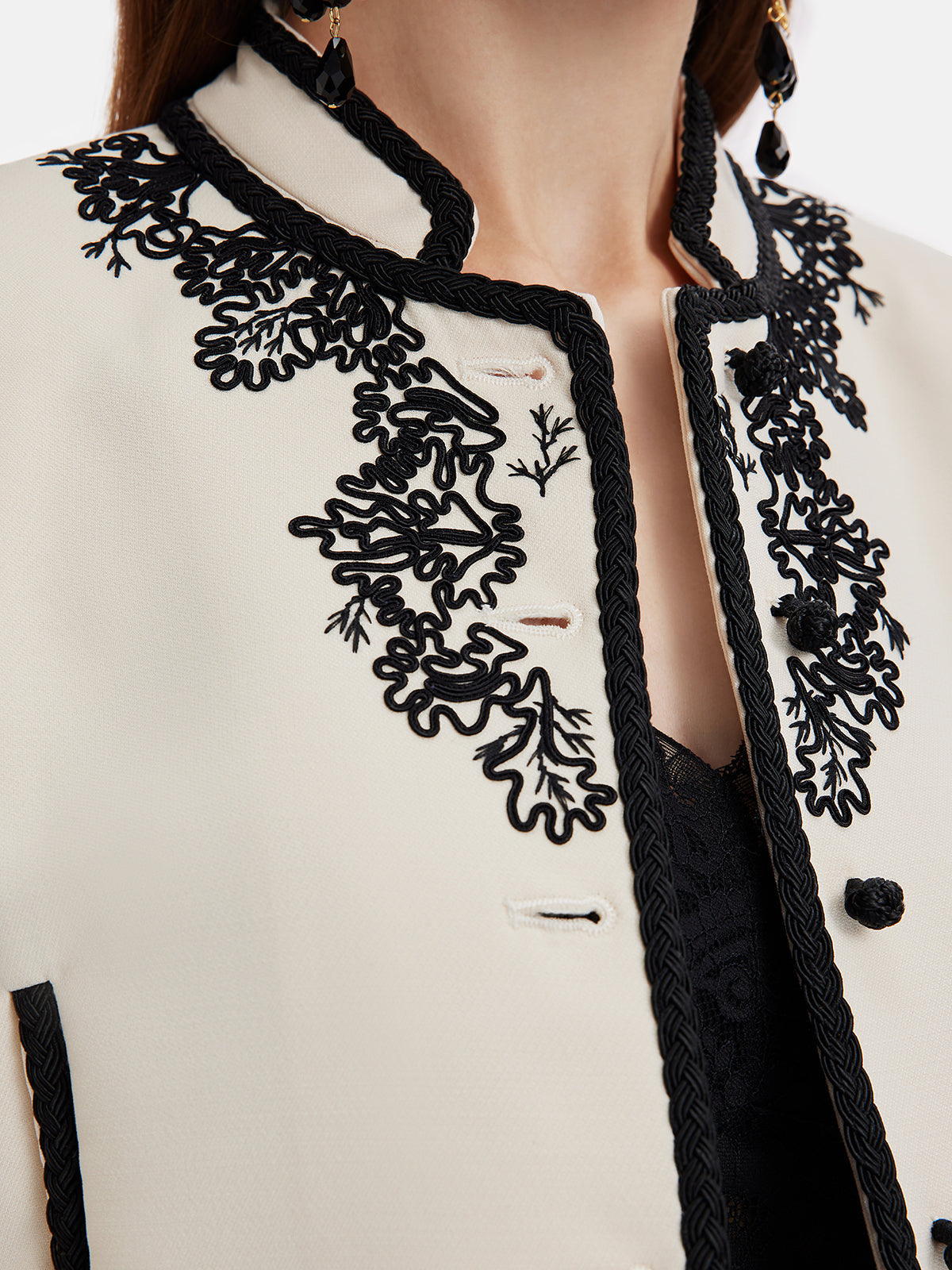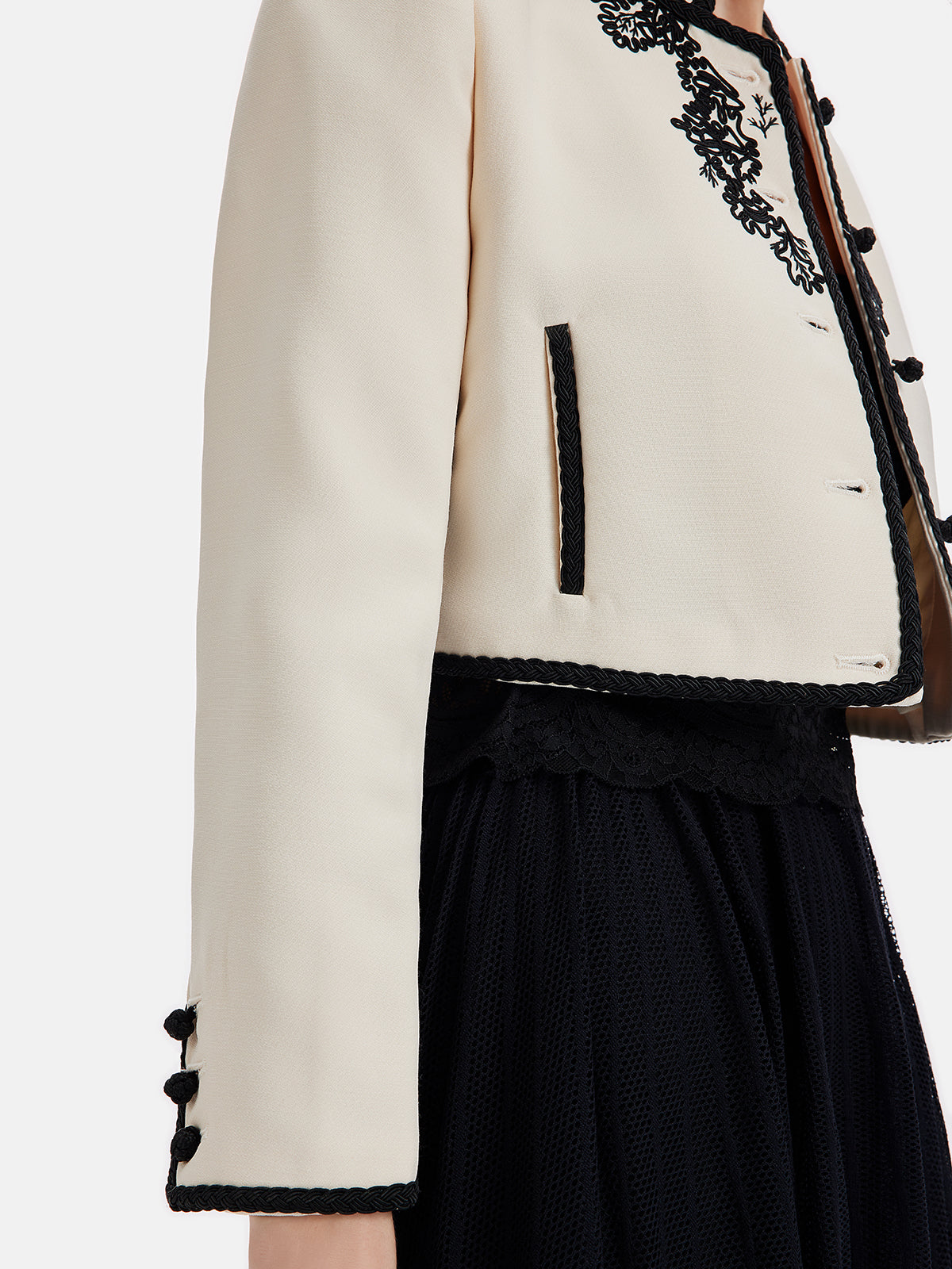 3D Kordon Nakışlı İpek Yün Kısa Ceket