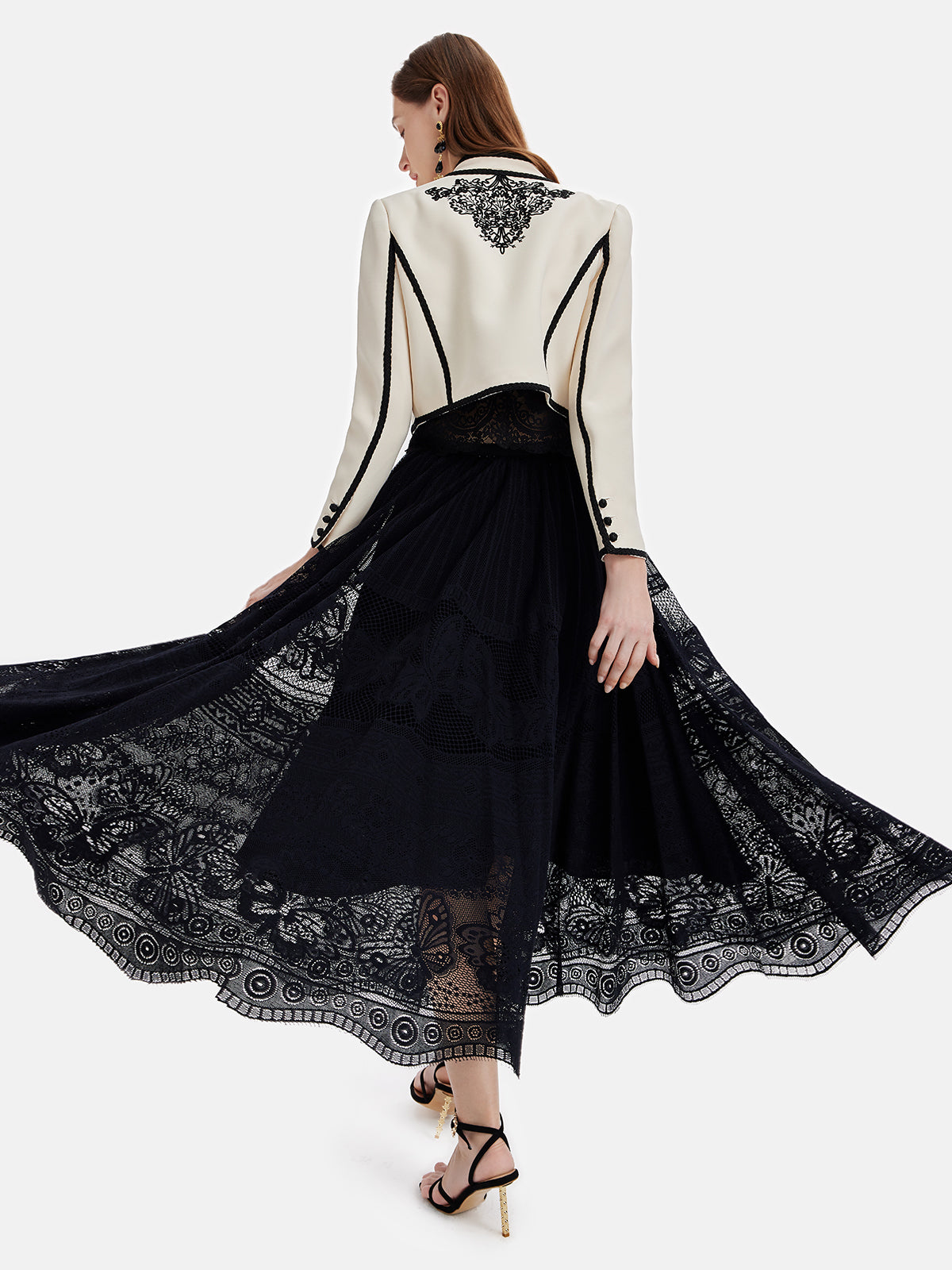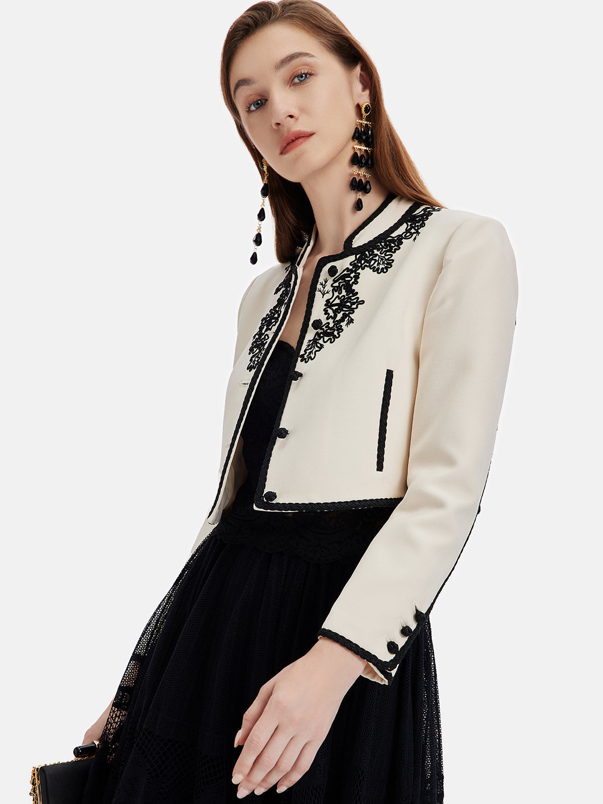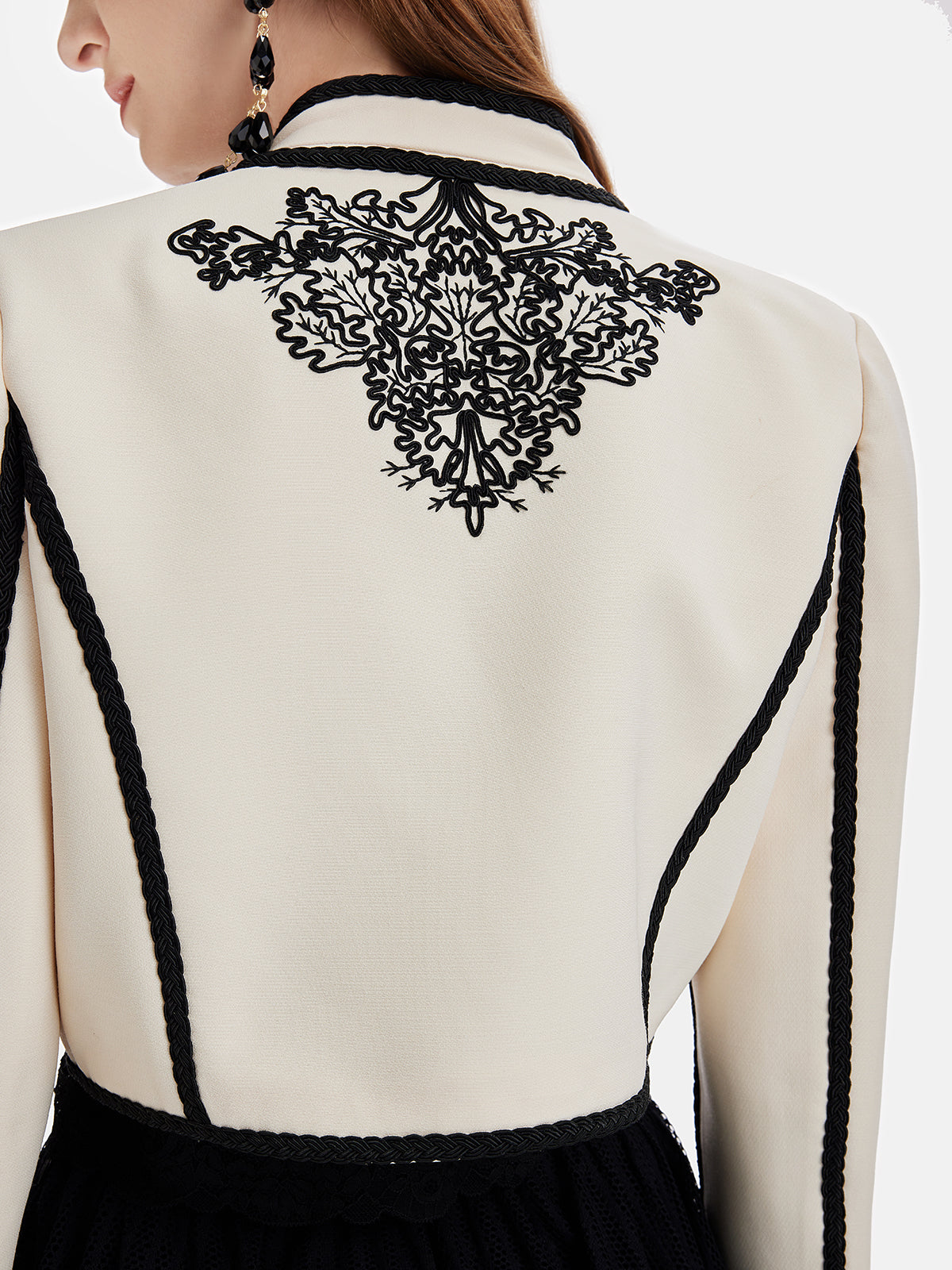3D Kordon Nakışlı İpek Yün Kısa Ceket