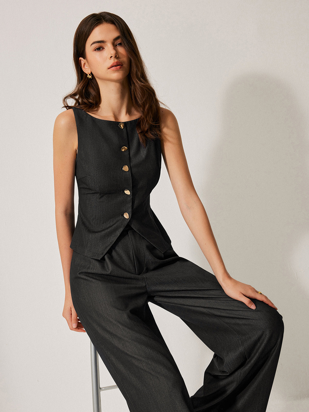 Düğmeli Ön Kolsuz Yelek