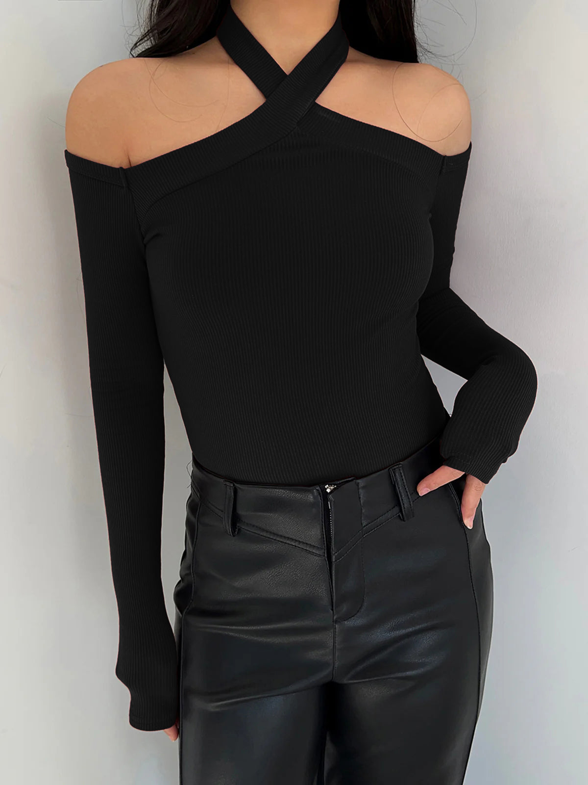 Criss Cross Soğuk Omuzlu Yivli Üst