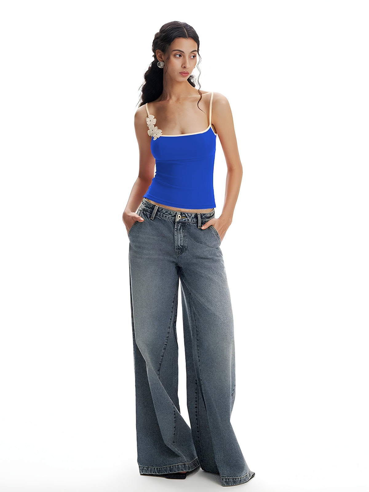 Çiçek Kontrast Trim Dar Kesim Atlet Üst