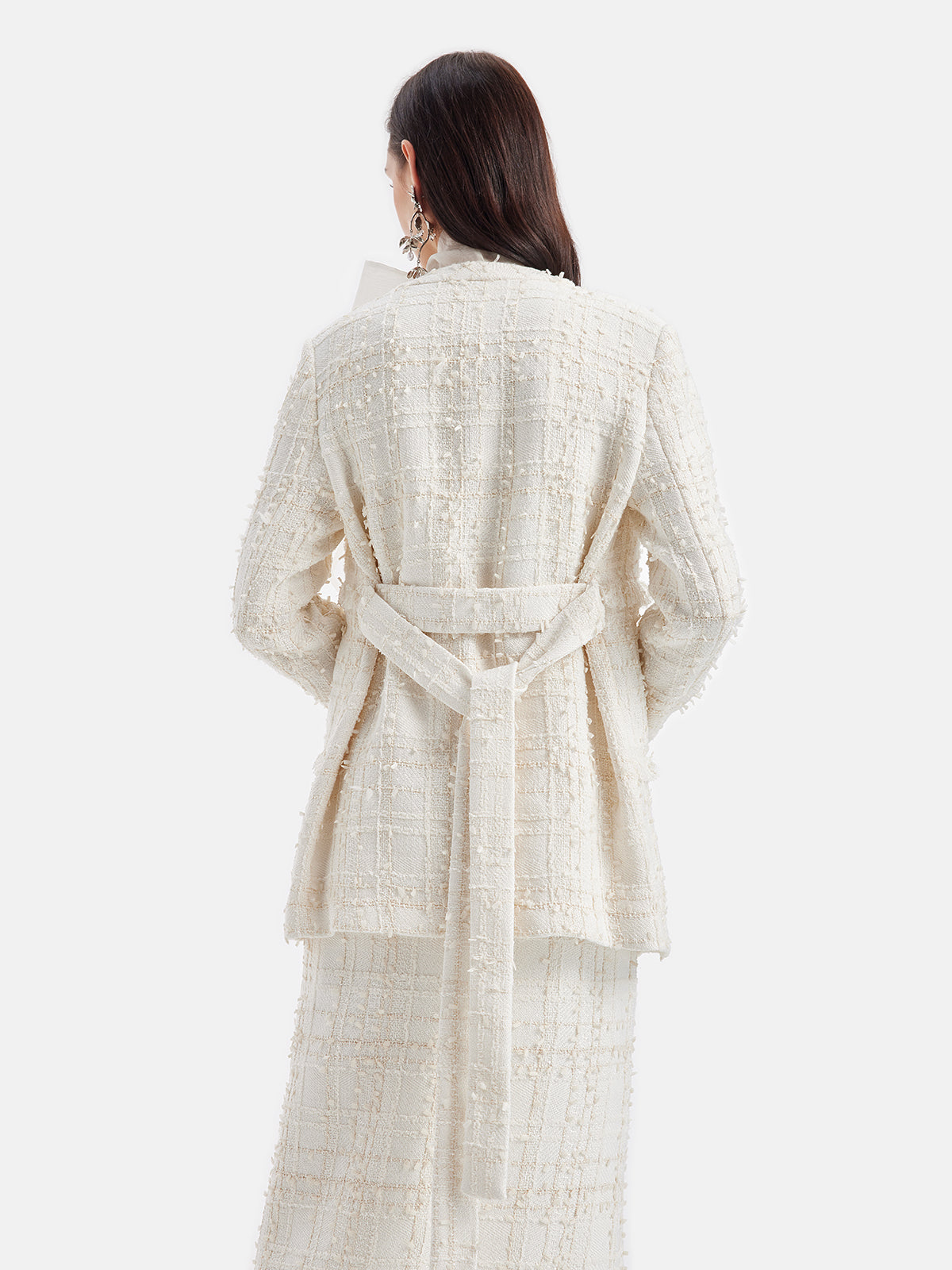 Fransız Simli Tüvit Fırfırlı Uzun Kaban
