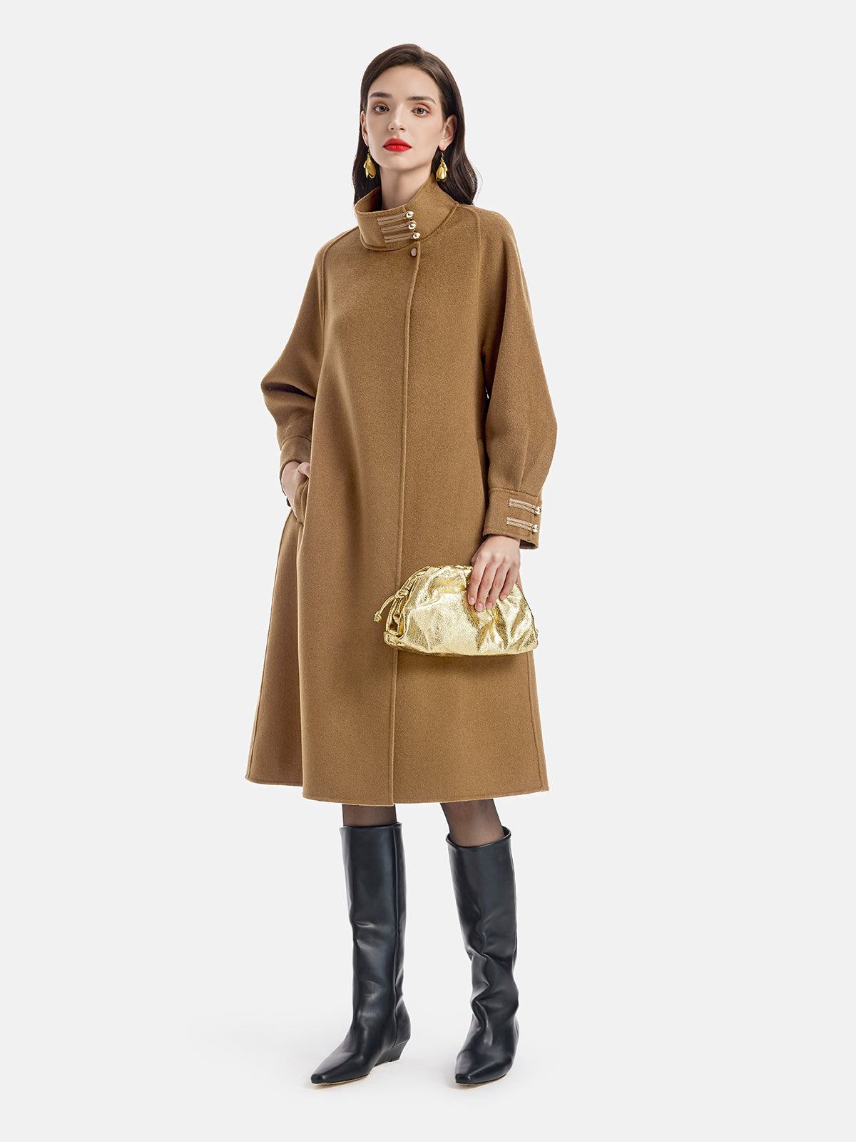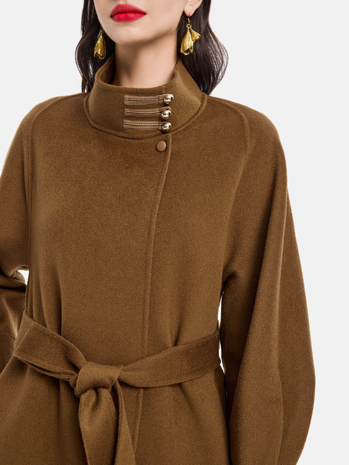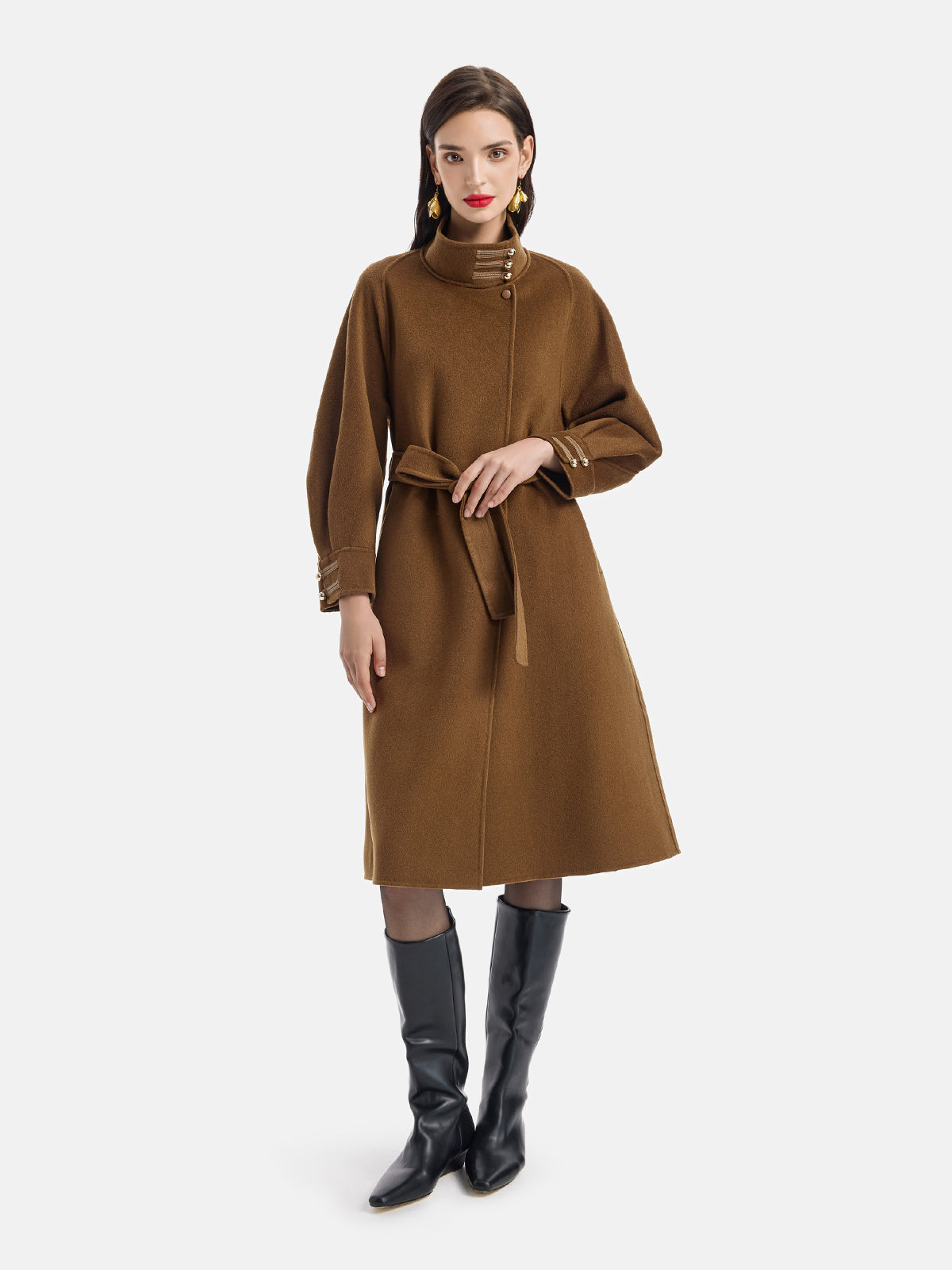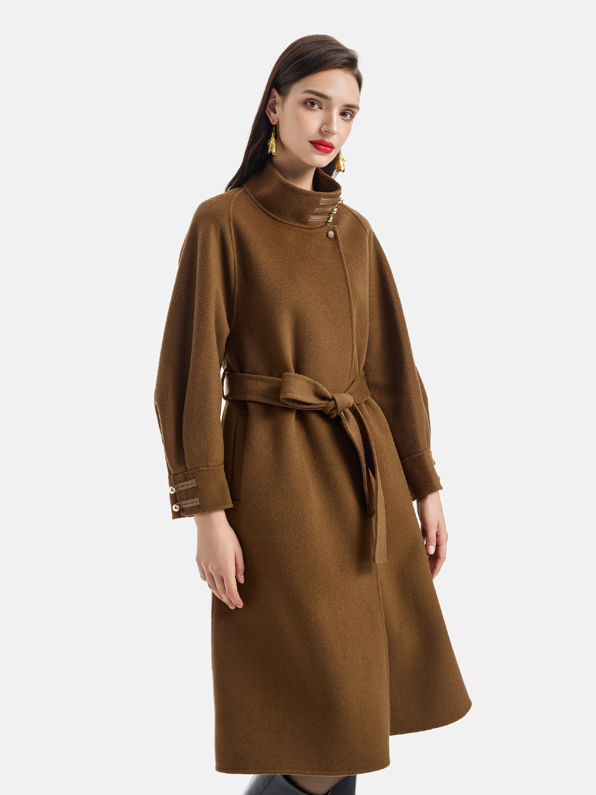 El İşi Çift Taraflı Yün Dik Yaka Kravat Kaban