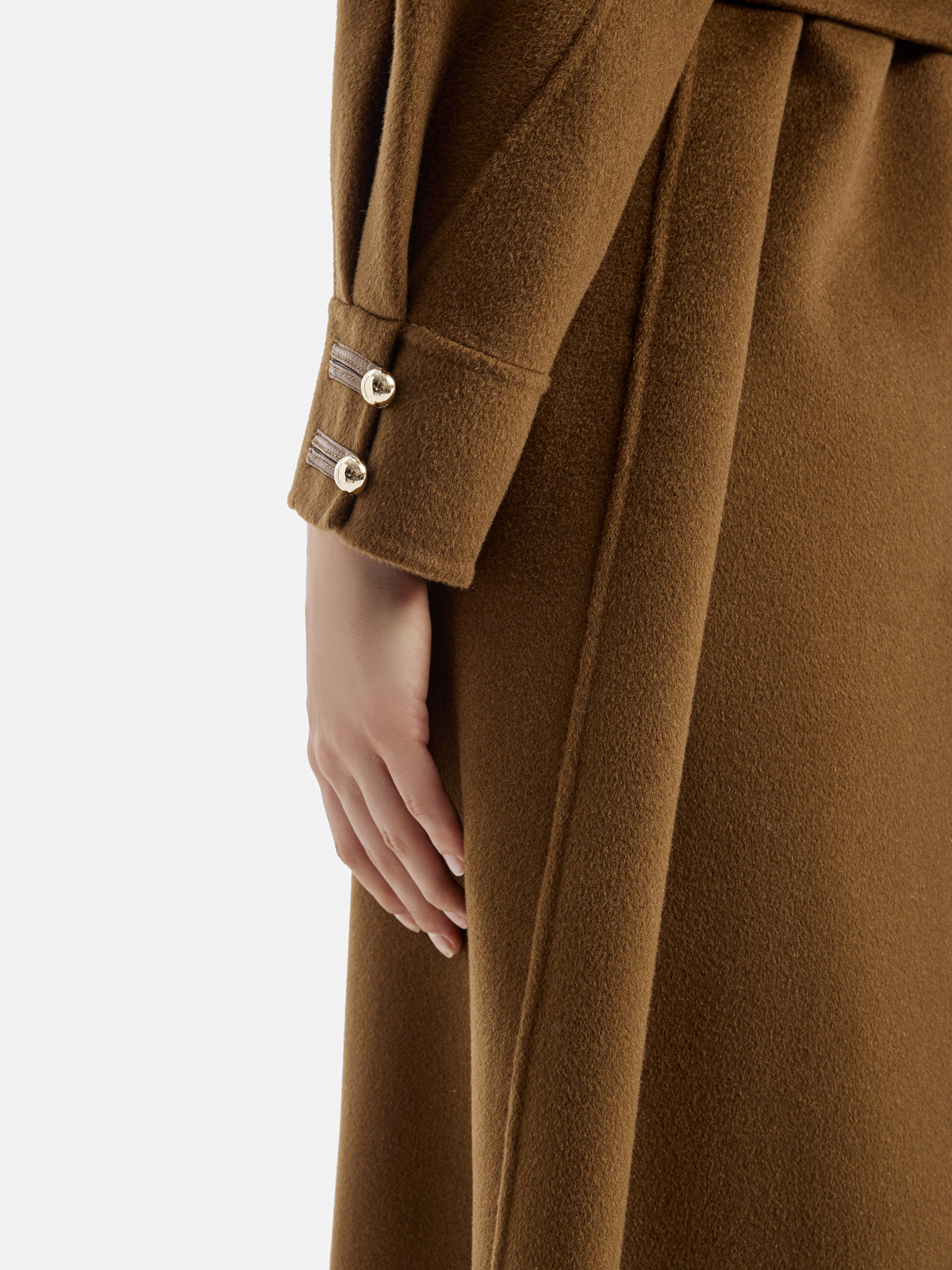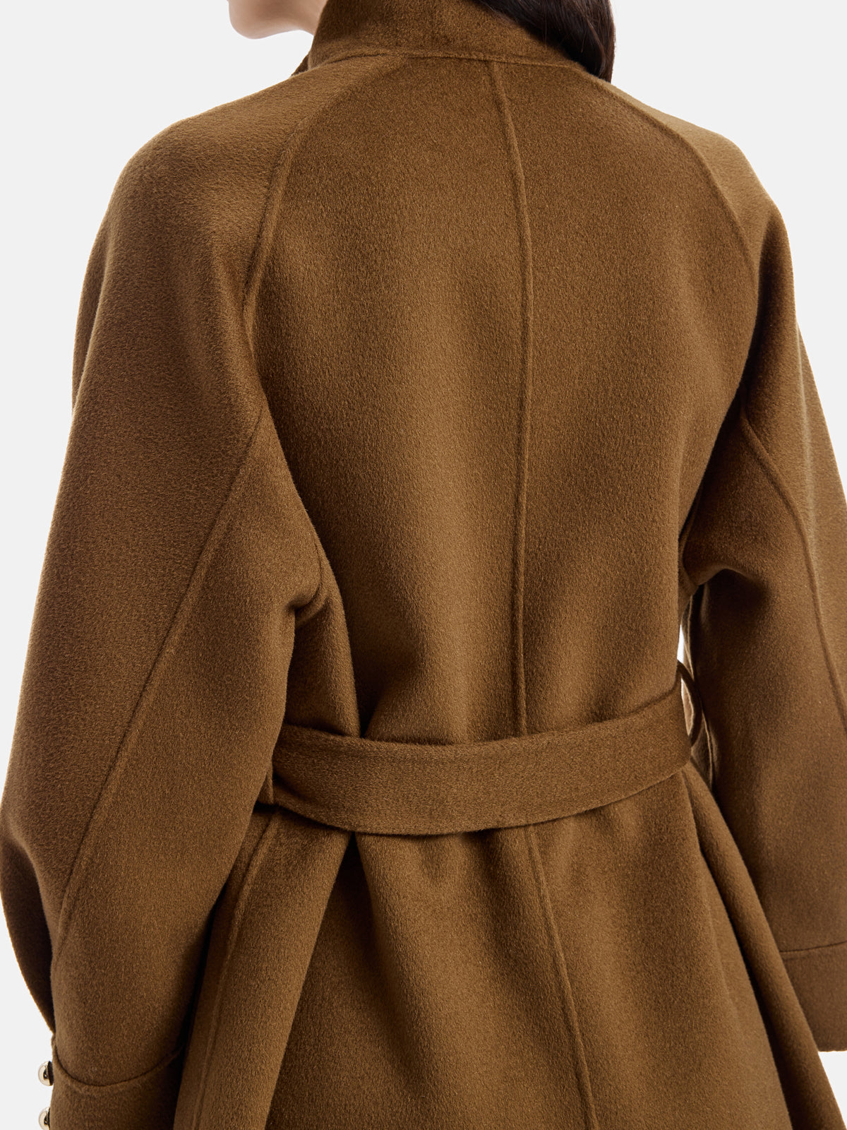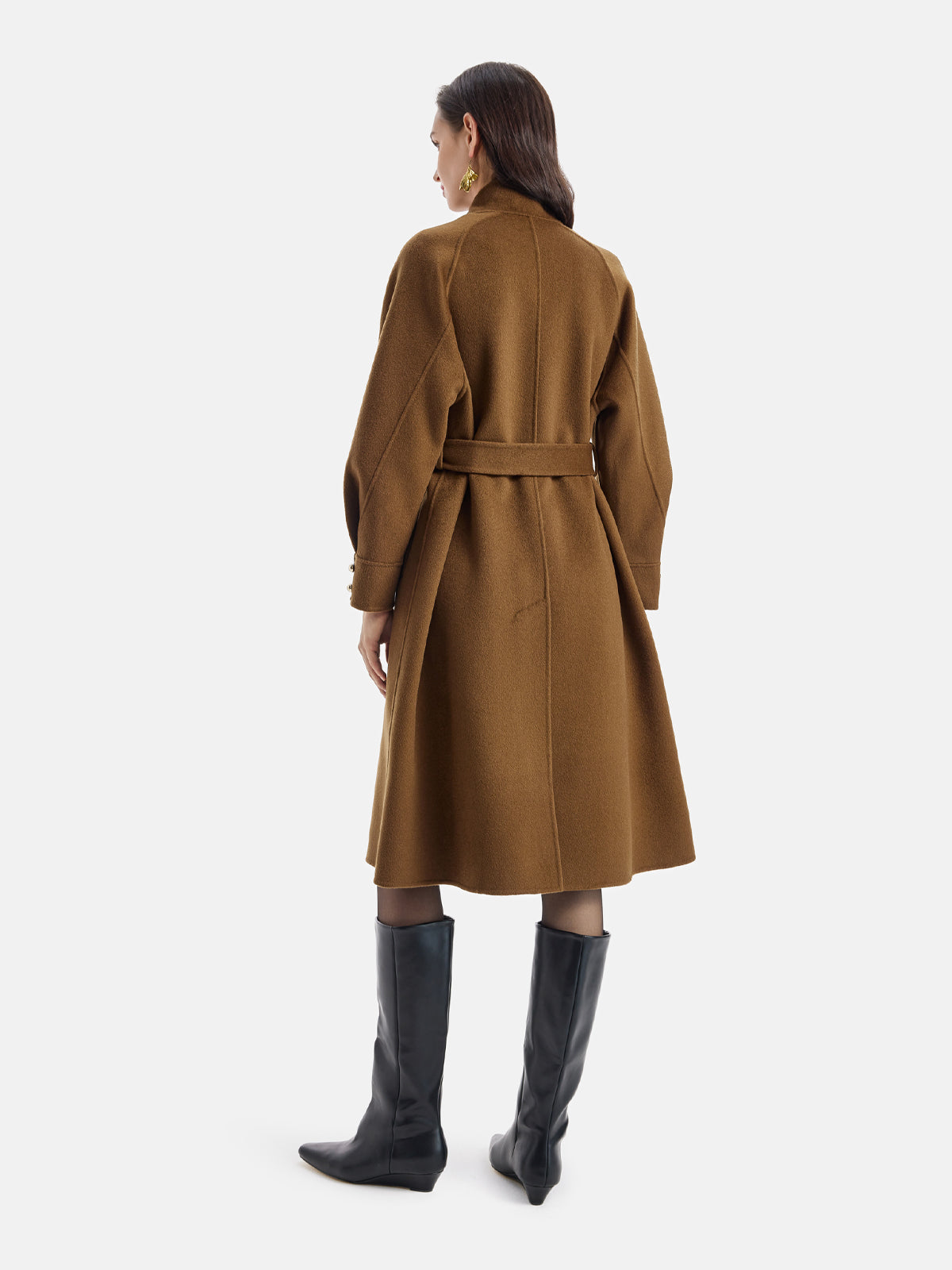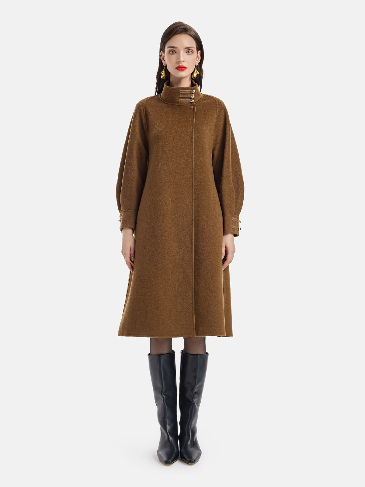 El İşi Çift Taraflı Yün Dik Yaka Kravat Kaban