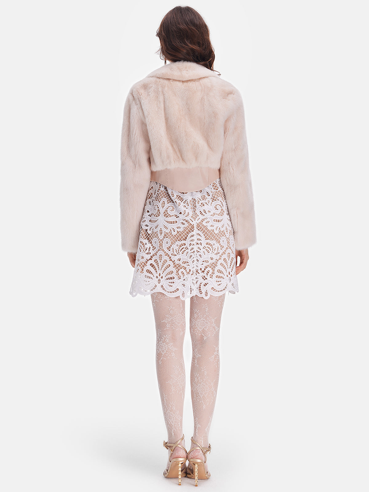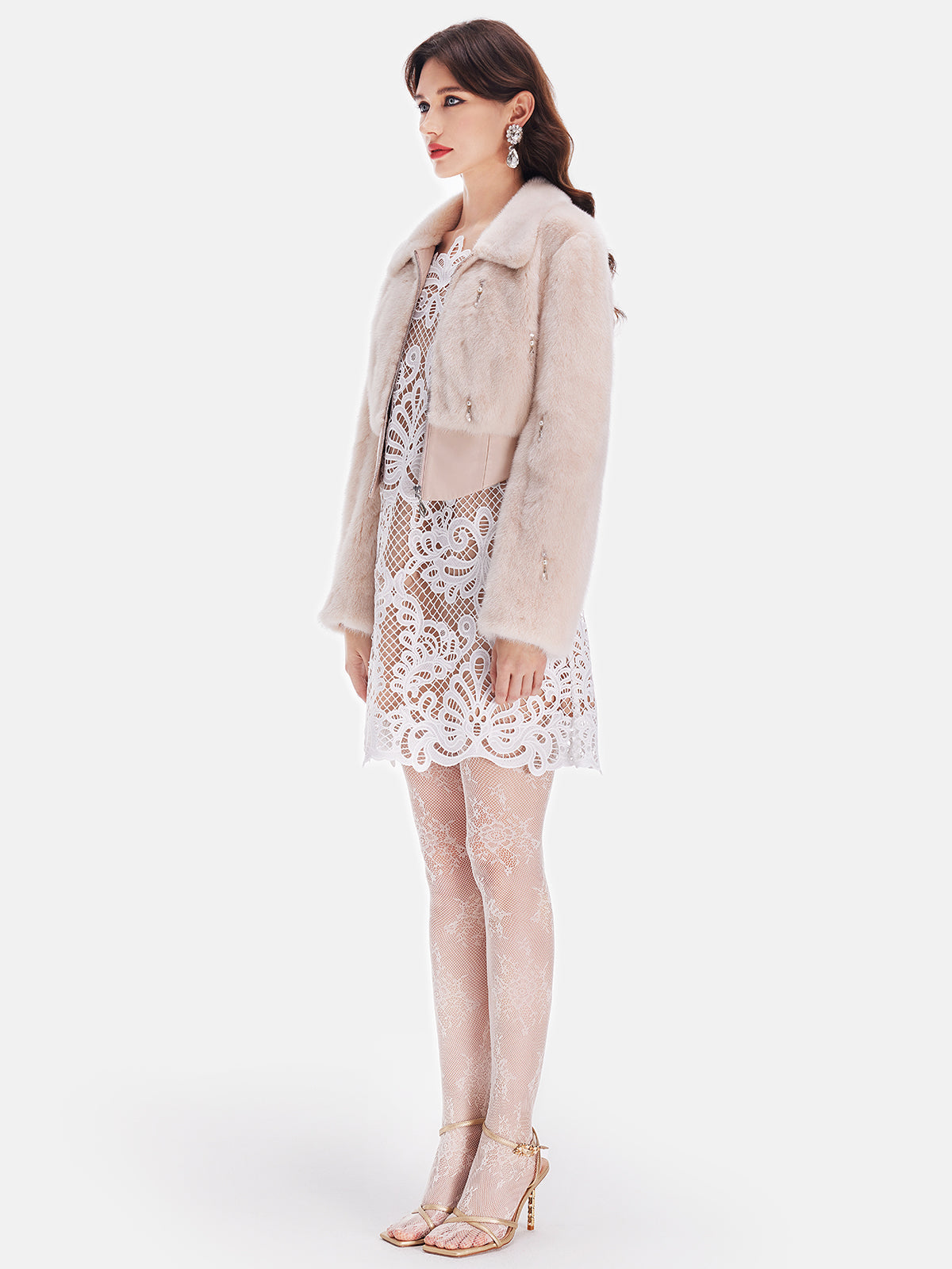 El Yapımı Boncuklu Yaka Suni Kürk Kısa Kaban