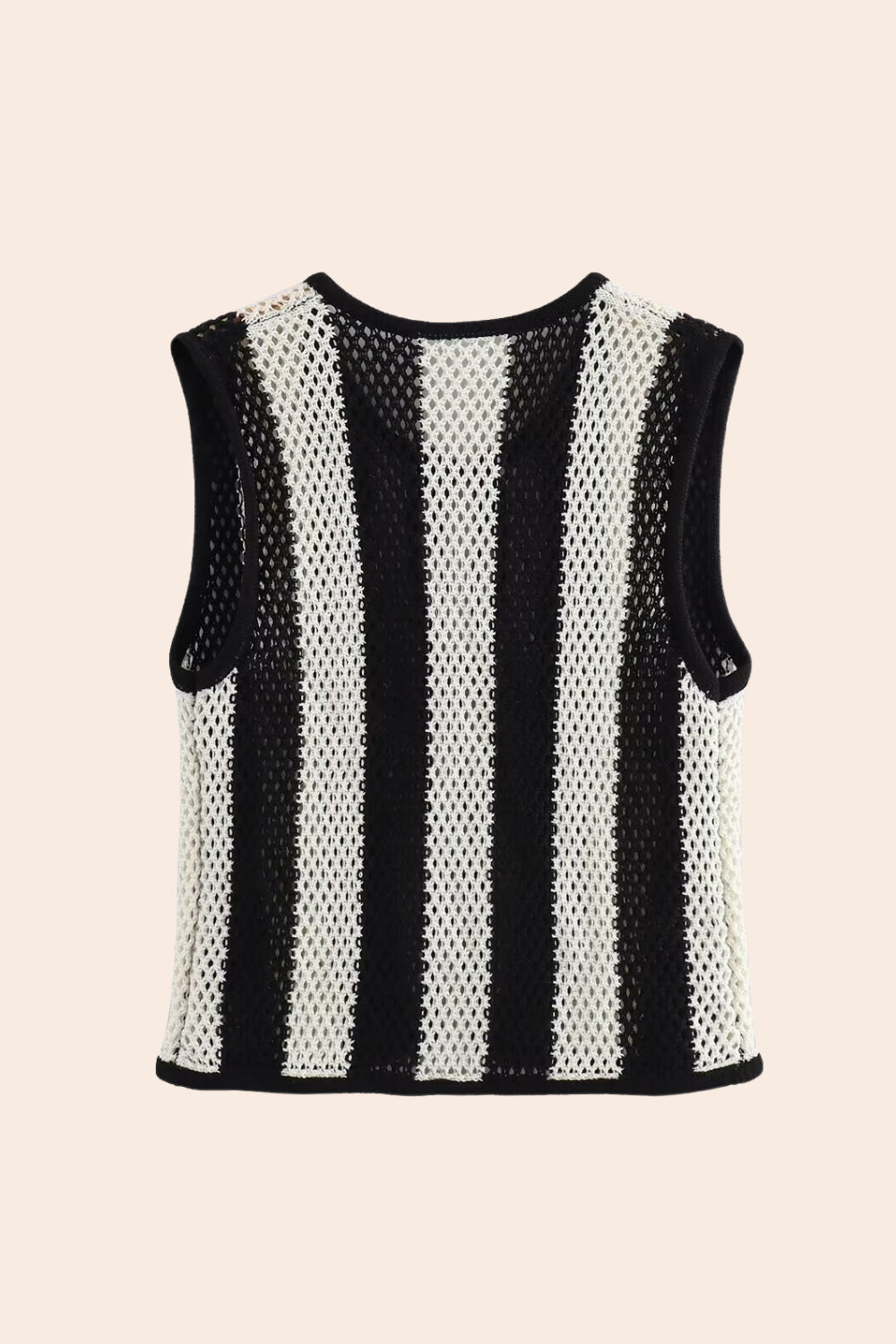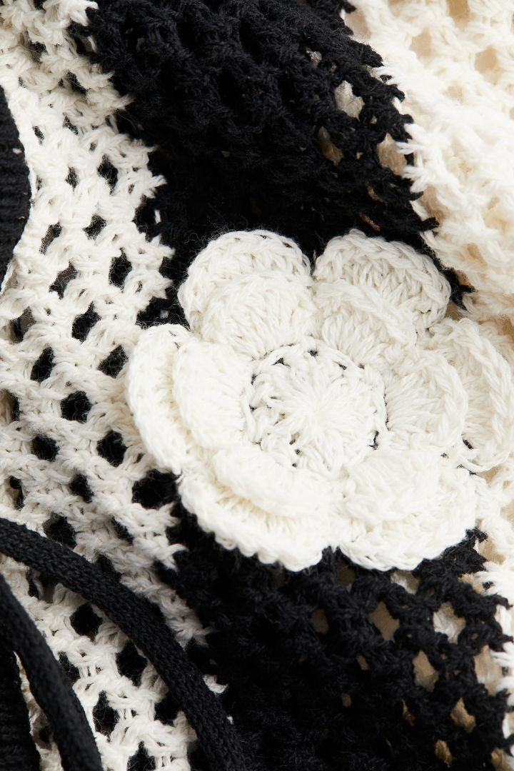 Güzel Çiçek Aplike İçi Boş Örgü Yelek
