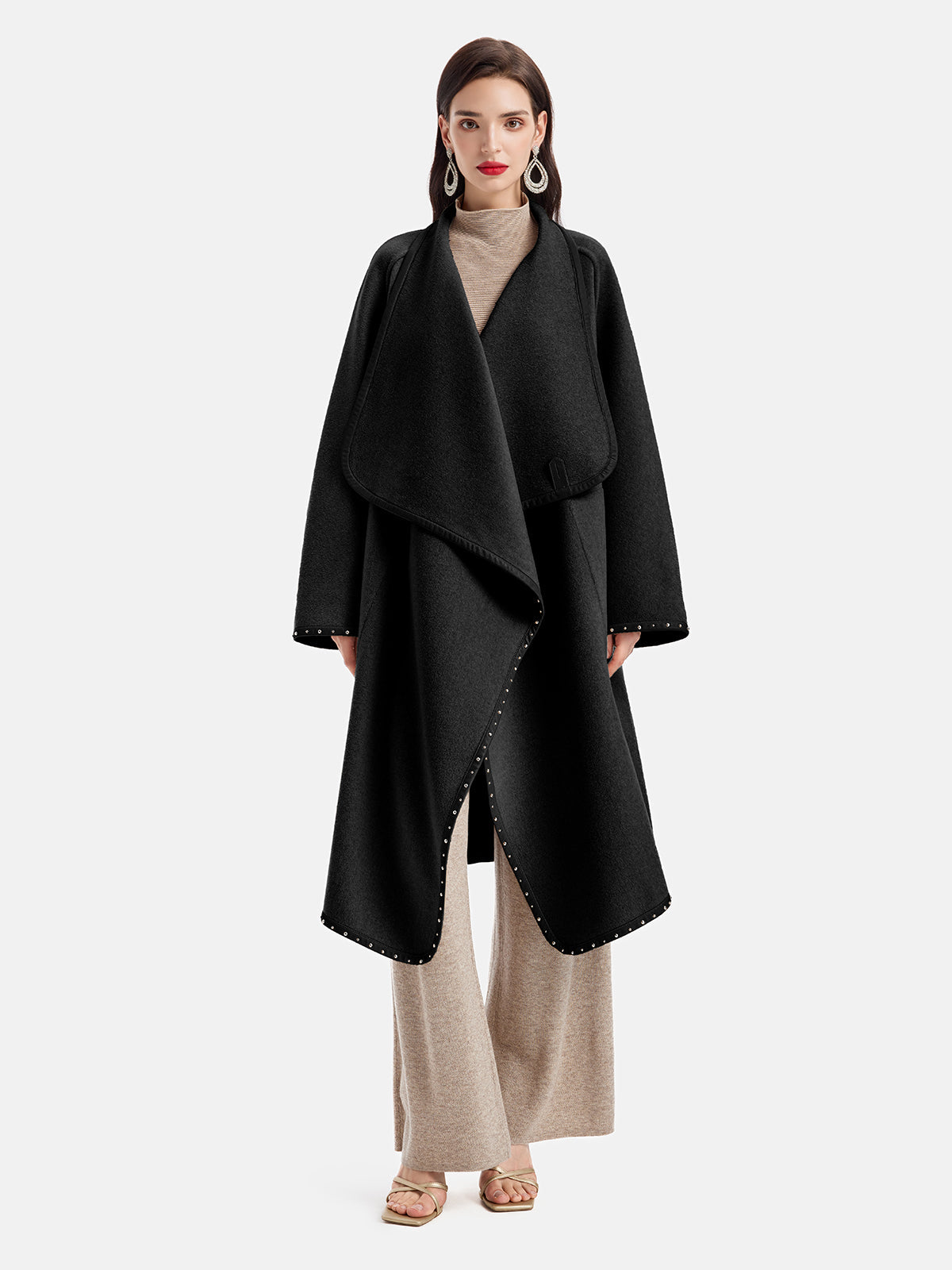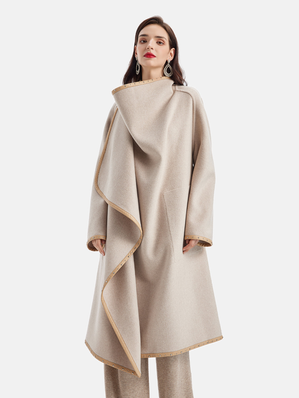 Düzensiz Siluet Orta Boy Kaşmir Kaban