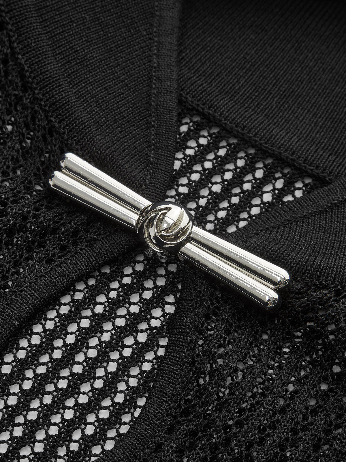 Anahtar Deliği Yaka Yarı Şeffaf Örgü Üst
