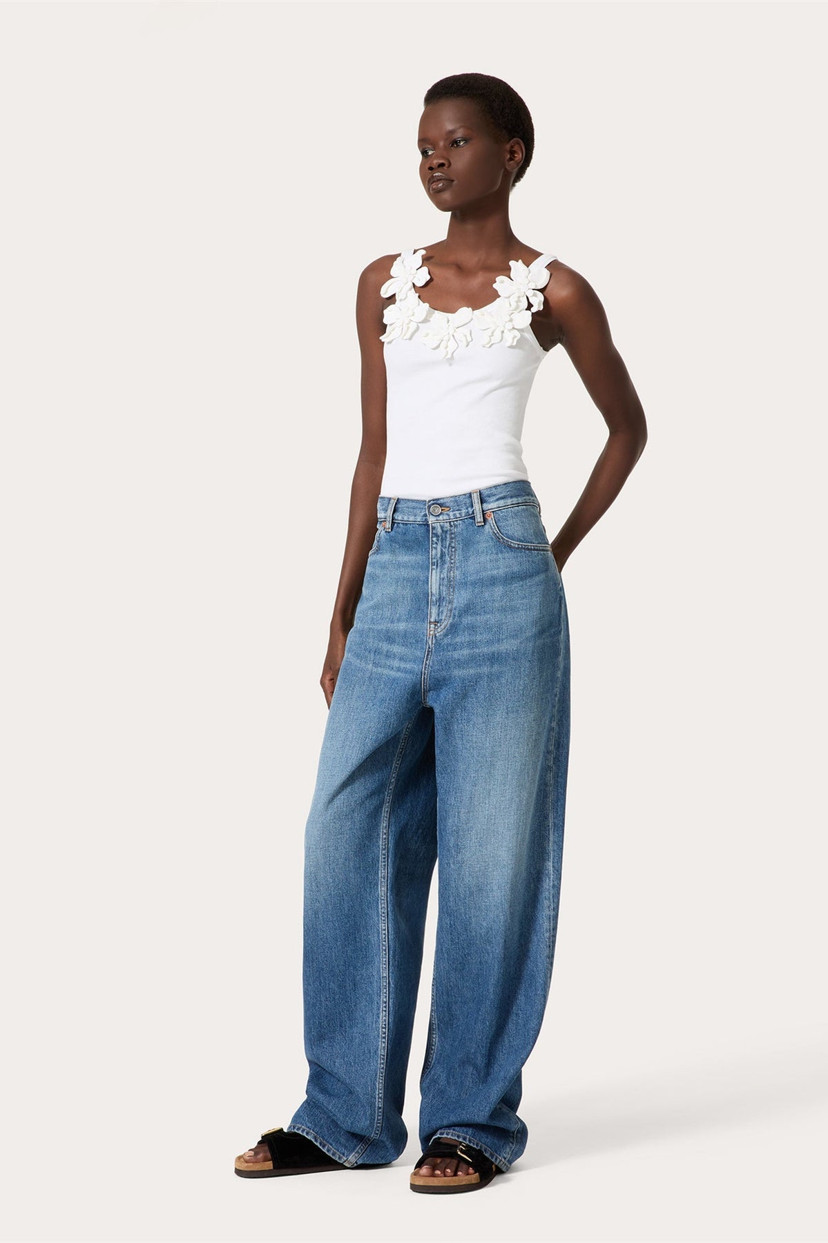 Lesley Çiçek Aplikeli Yuvarlak Yaka Üst