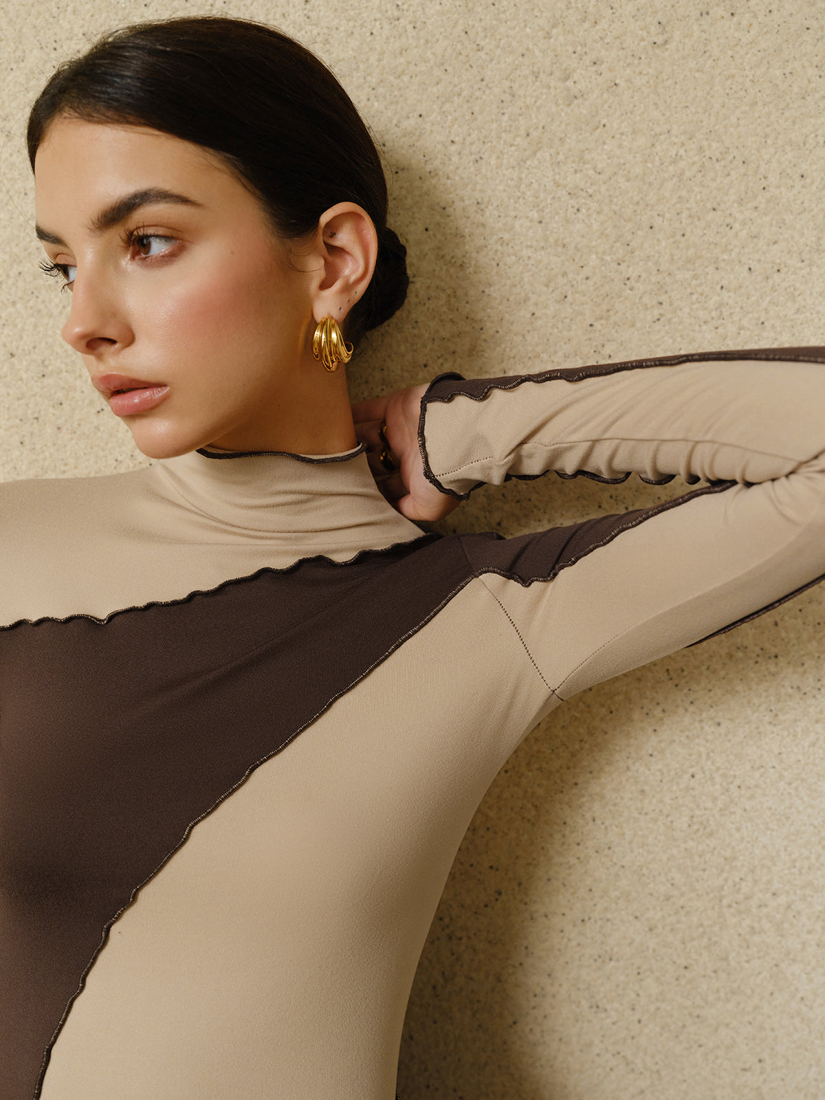 Yarı Şeffaf Renk Bloklu Marul Kenarlı Jersey Üst