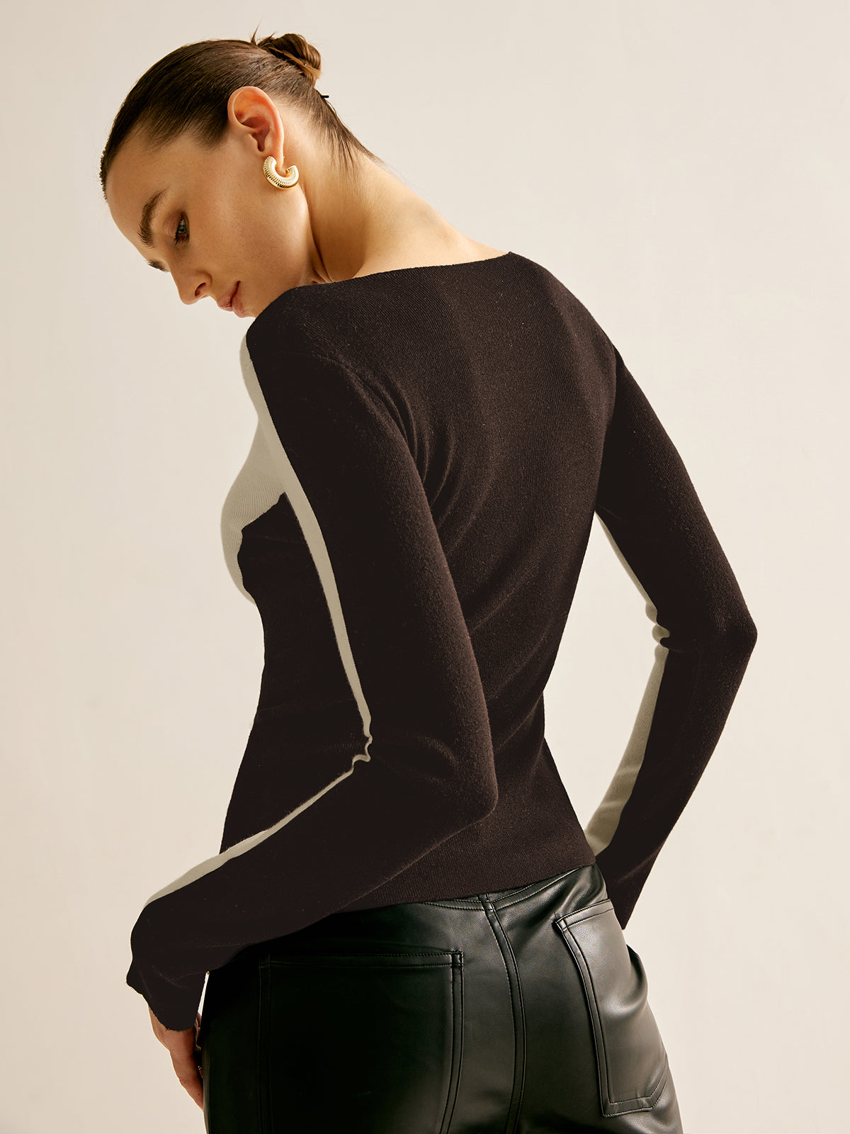 Yün Karışımlı Renk Bloklu İnce Kazak