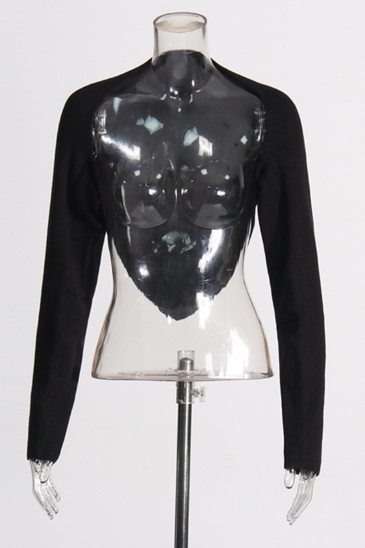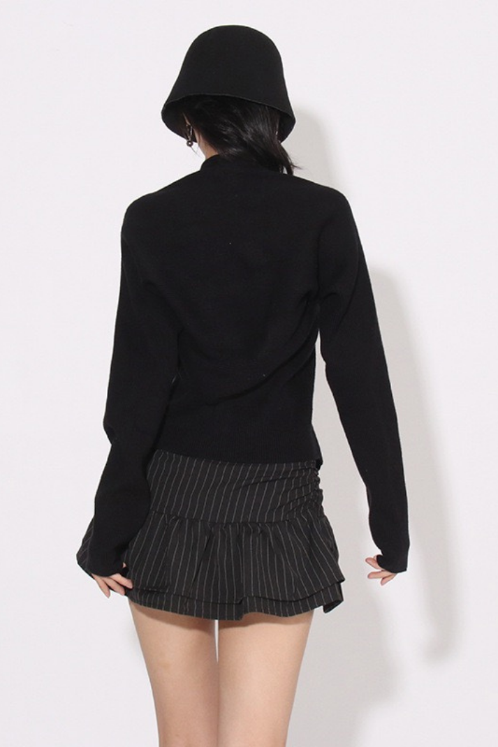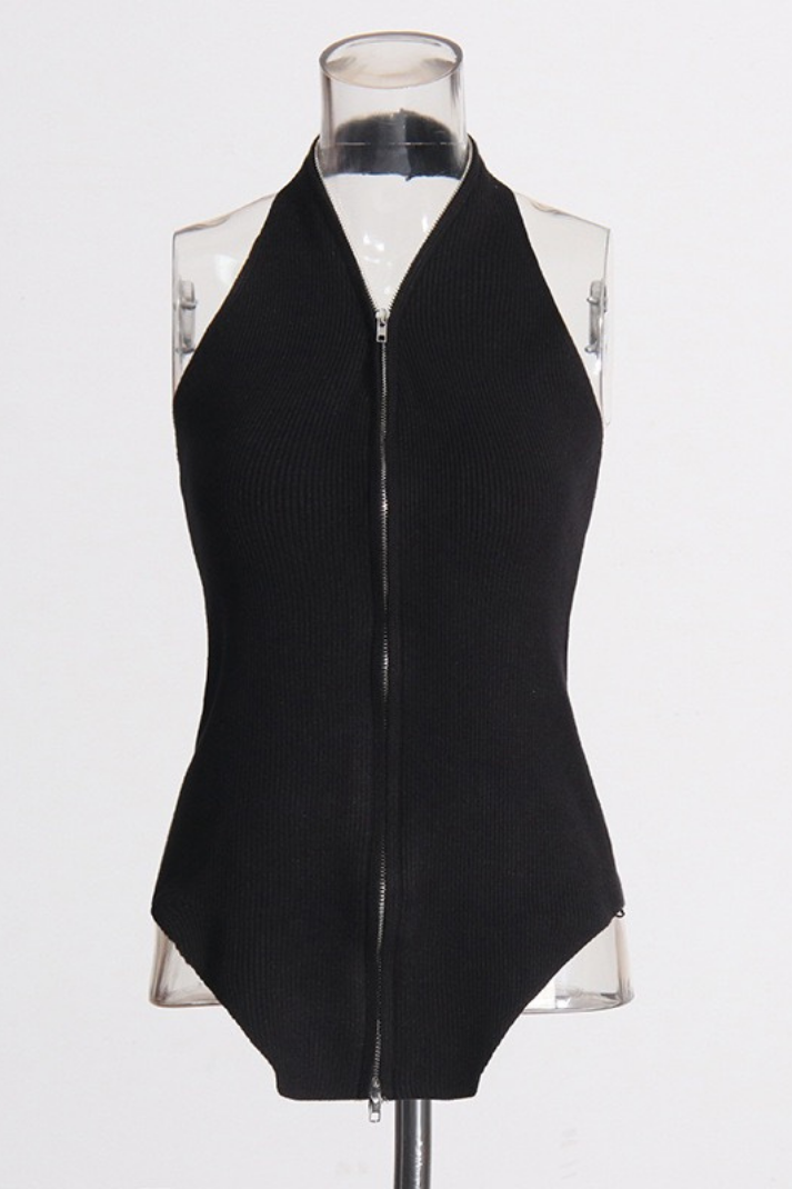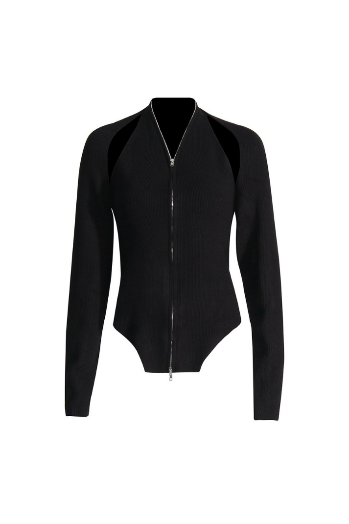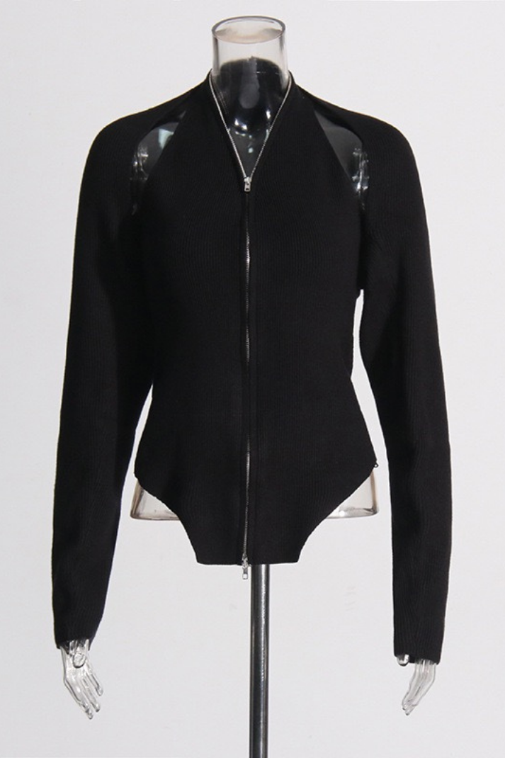 -Detaylar: Halter yaka atlet, uzun kollu hırka, boyundan aşağı inen zincir detay, çift yönlü fermuar kapama, etek ucu asimetrik kesim
