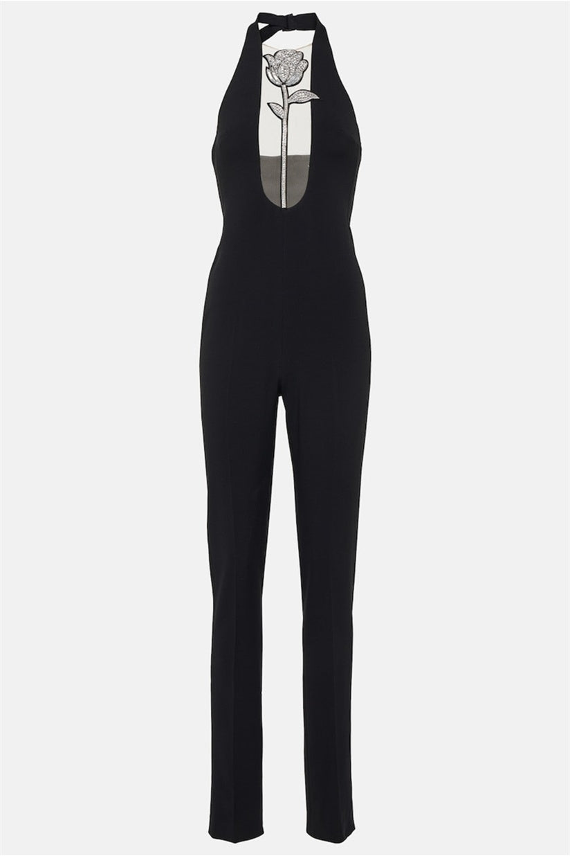 Dana Kristal Taşlı Çiçek Boyundan Bağlamalı Tulum
