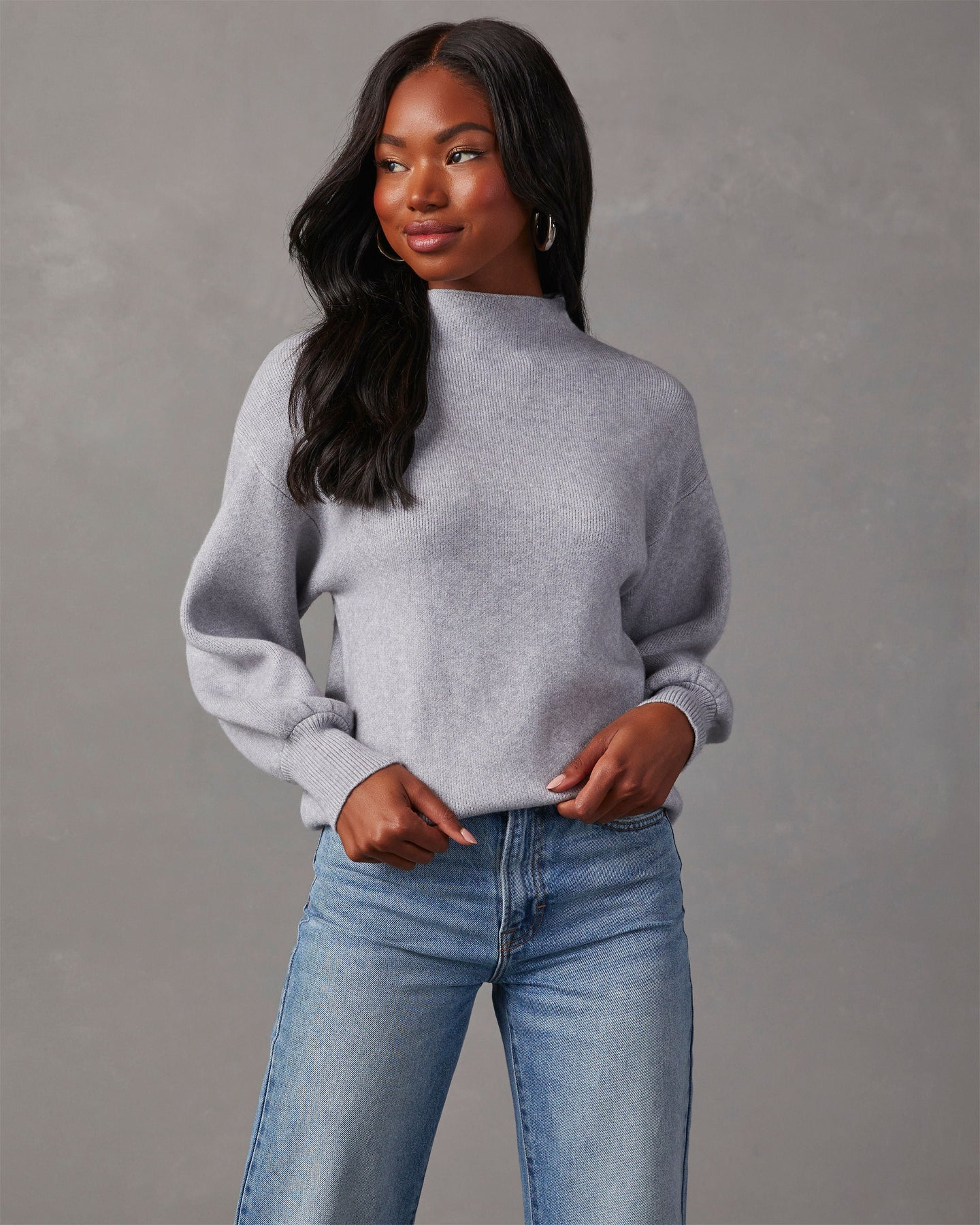 Our Amsterdam Mock Neck Sweater adds a sophisticated-chic look to your sweater wardrobe! This fine knit sweater is crafted with a beautiful, luxe weight that drapes effortlessly in a relaxed fit. Designed with a mock neckline and billowy long sleeves. Pair yours with classic denim and heels for an office chic look!