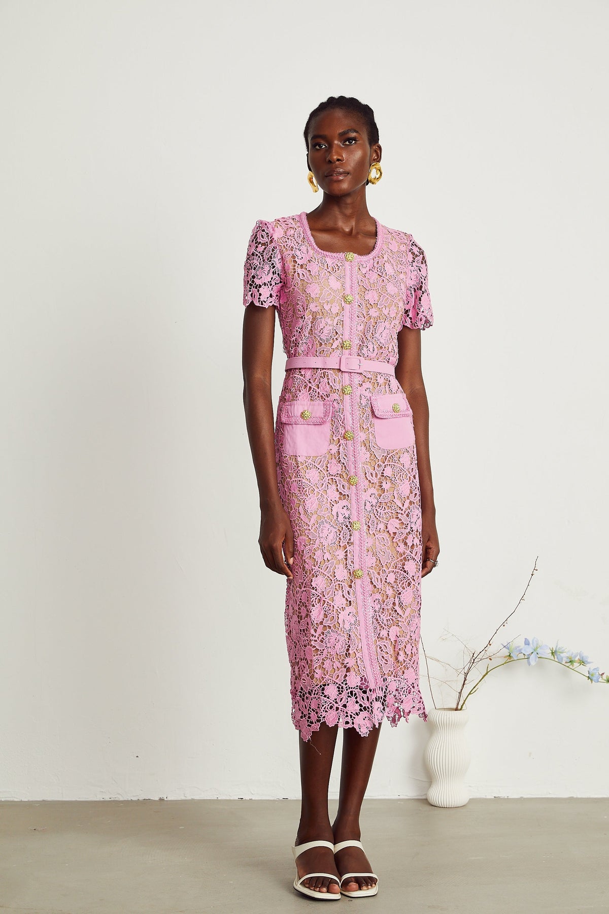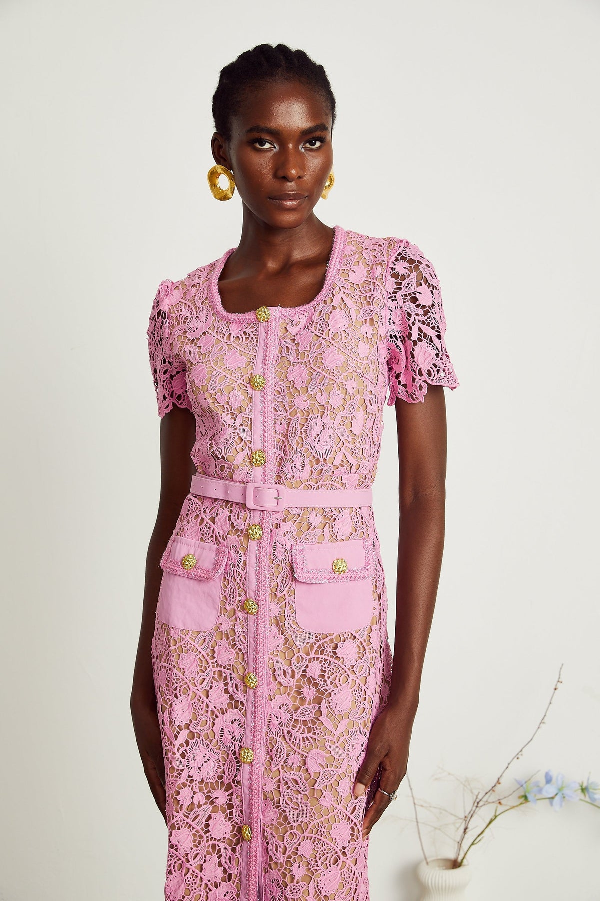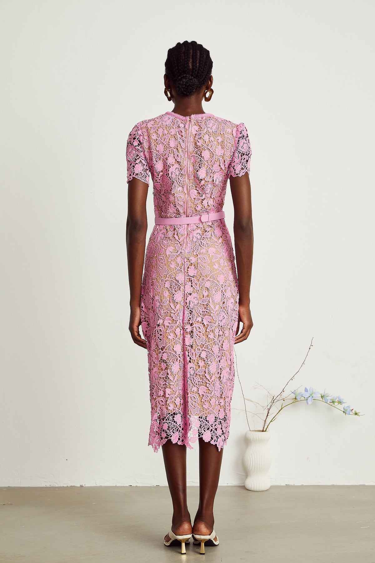 Anastasie Pembe Dantel Kaplama Midi Elbise