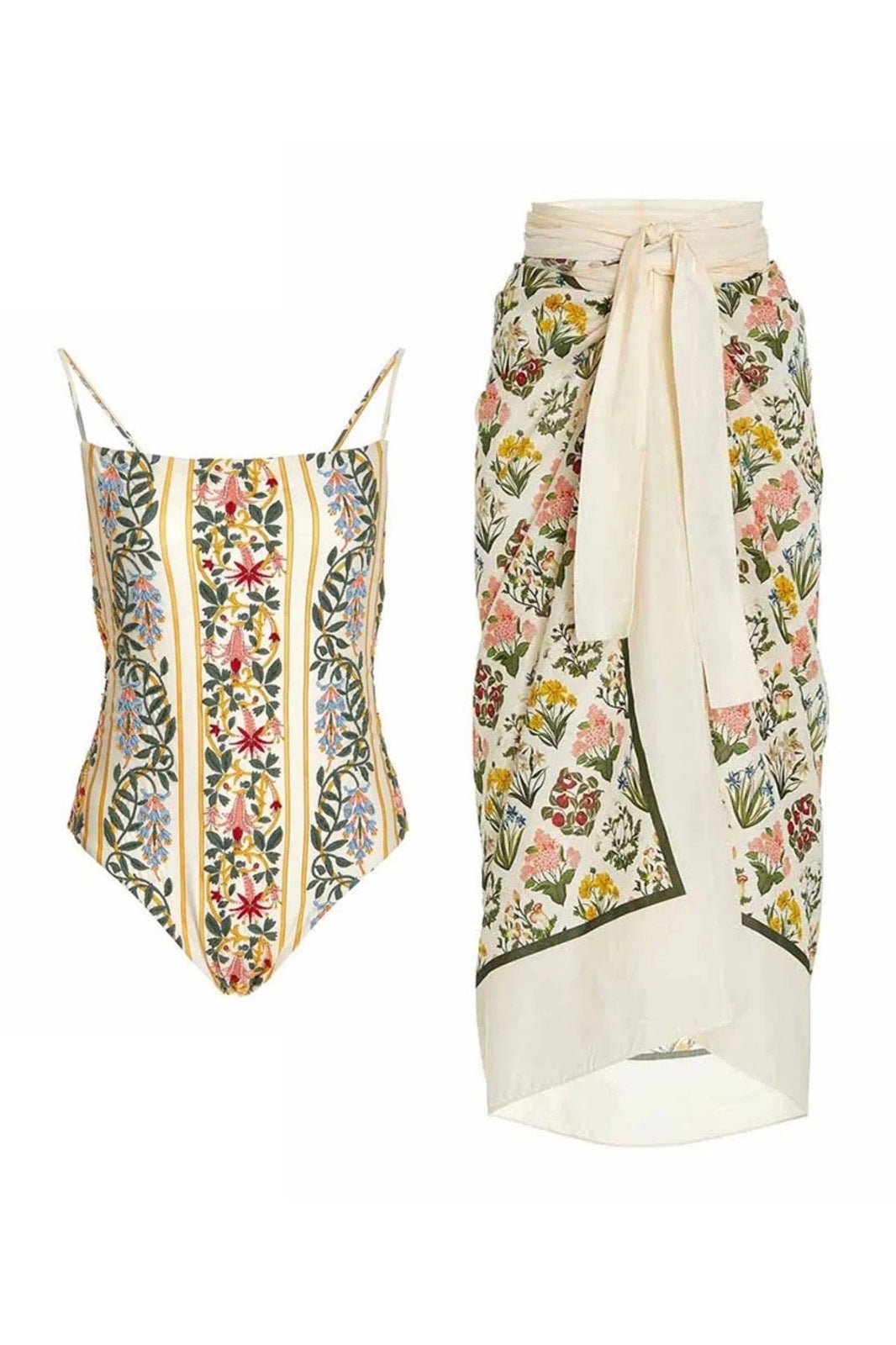 Doris Baskılı Sırtı Açık İki Parçalı Yüzme Seti