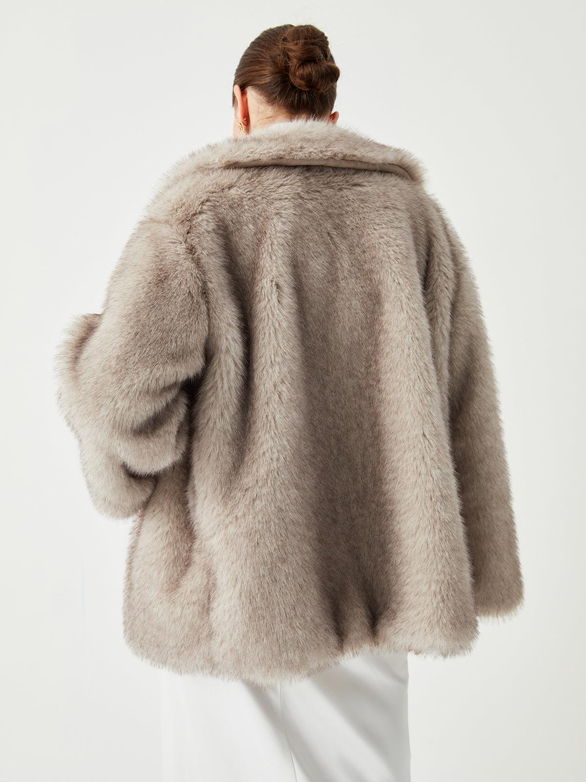 Gri Faux Kürk Şal Yaka