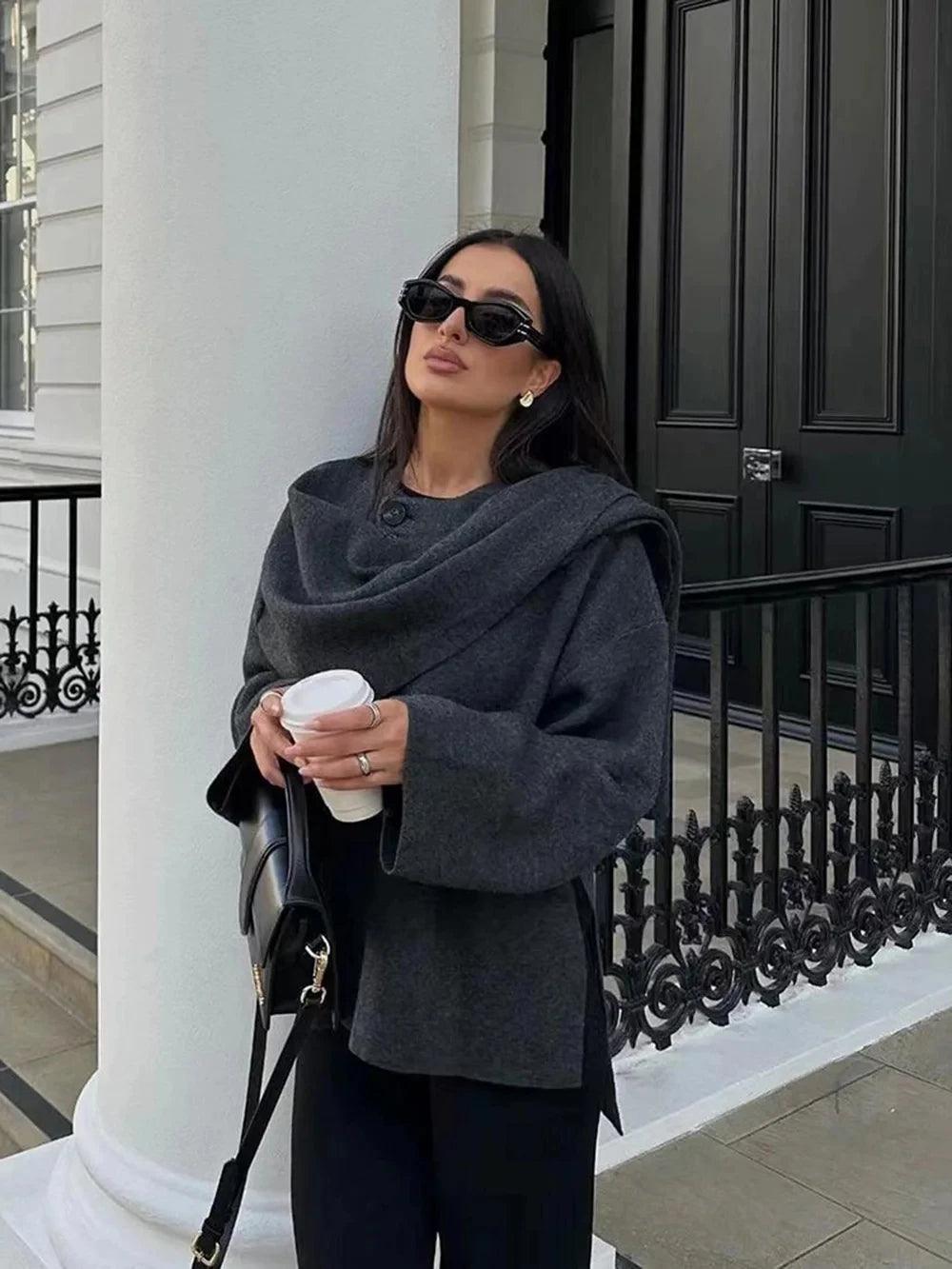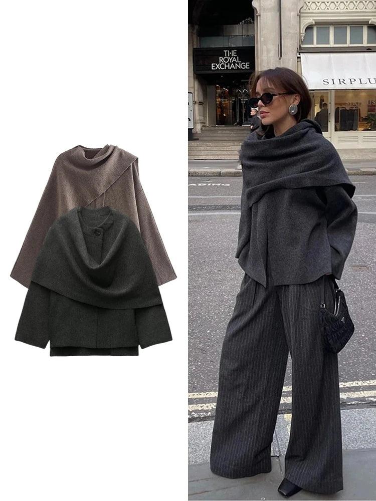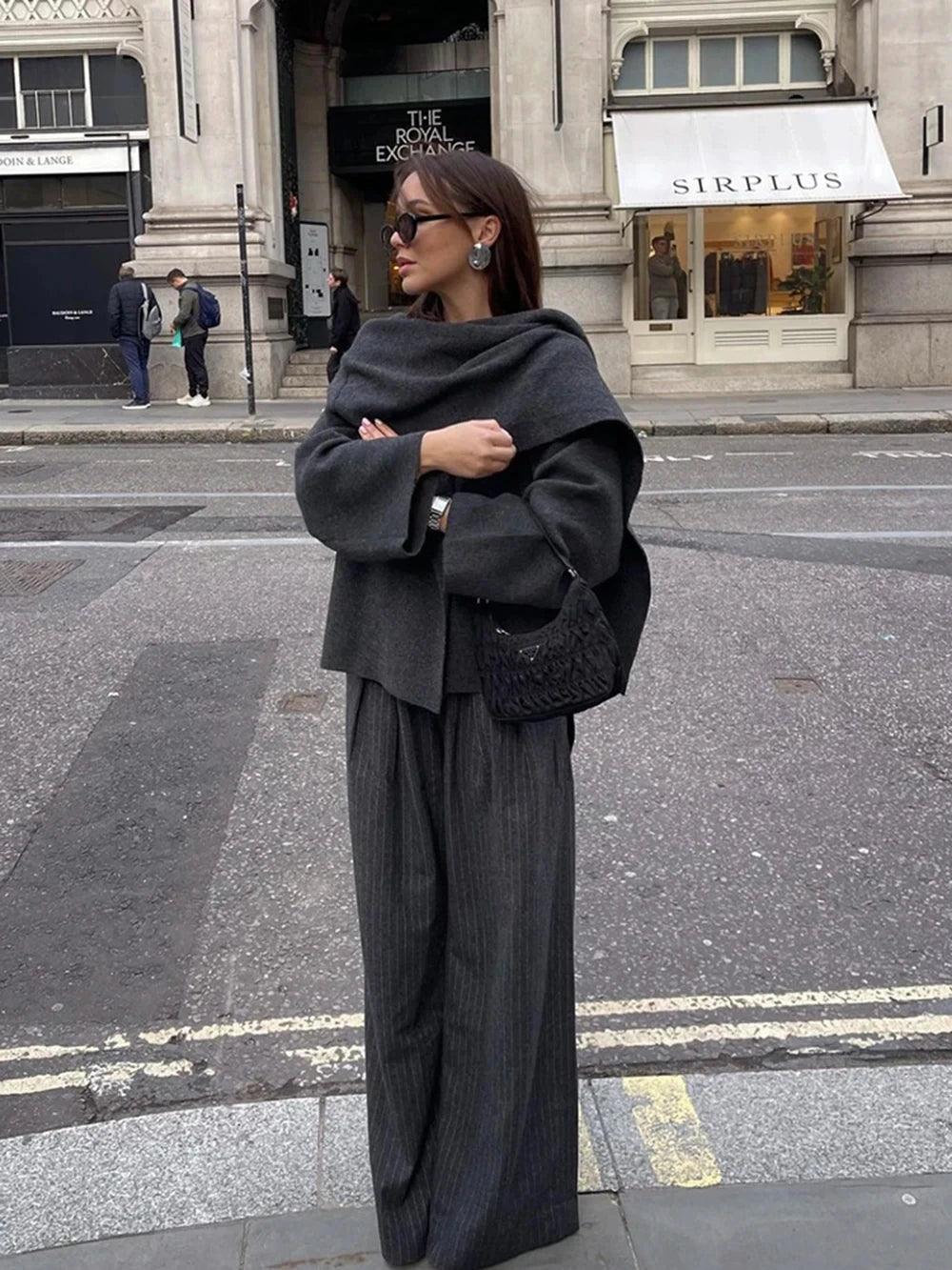 Modern Asimetrik Yün Pançomuzla zahmetsizce şık ve rahat kalın. Benzersiz dökümlü bir siluetle tasarlanan bu panço, kış gardırobunuza şık bir dokunuş katar. Çok yönlü kesimi ve sıcak tutan hafif malzemesi, onu soğuk günlerde kat kat giymek için ideal bir seçim haline getirir. Günlük gezintiler için mükemmeldir veya görünümünüze sofistike bir hava katar.