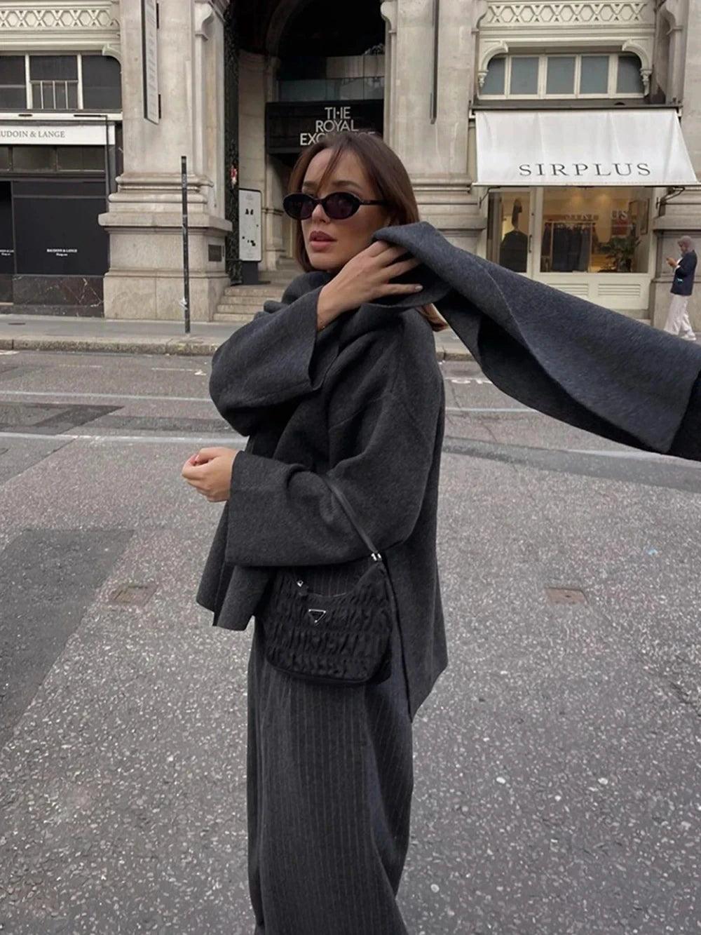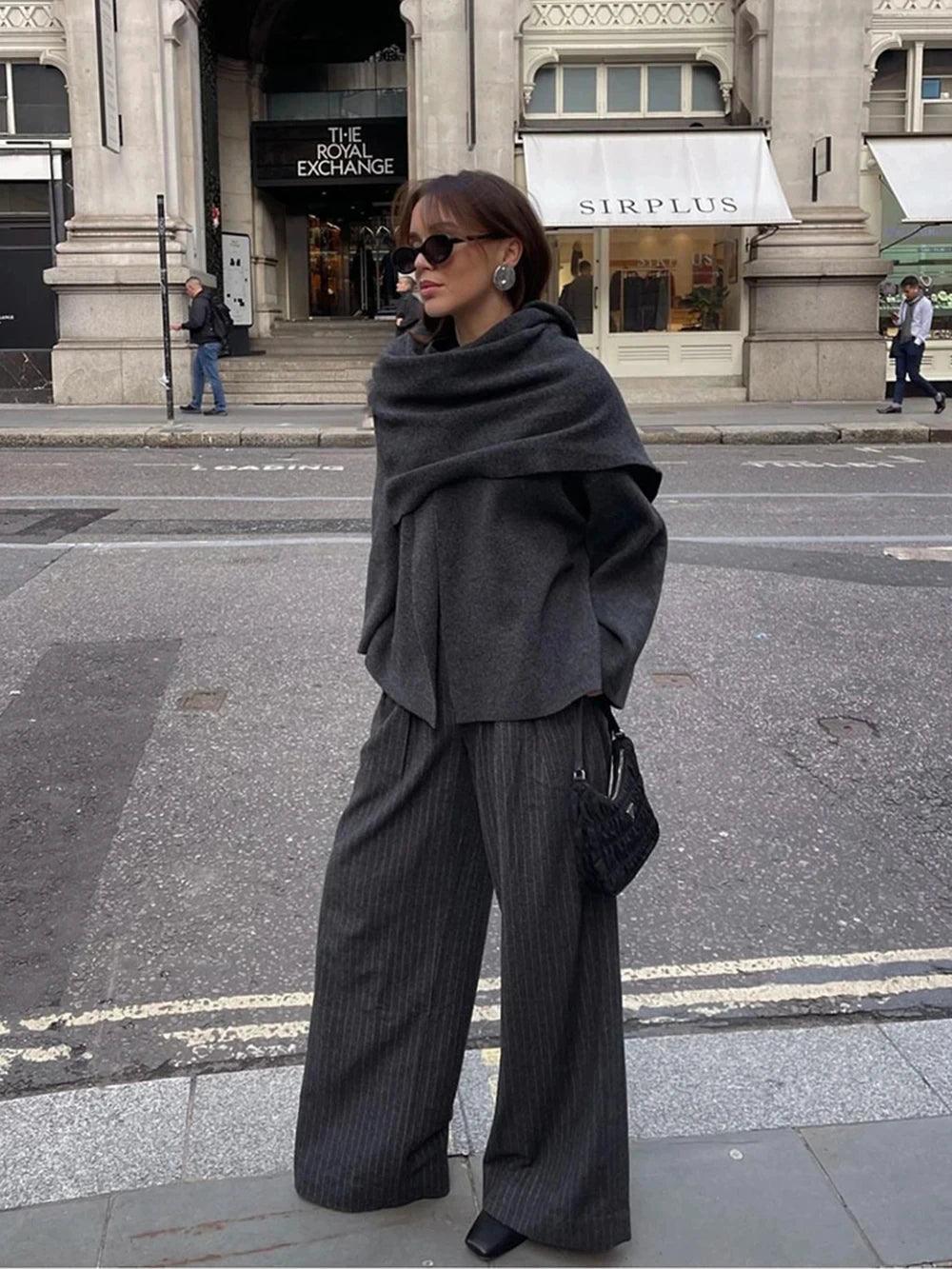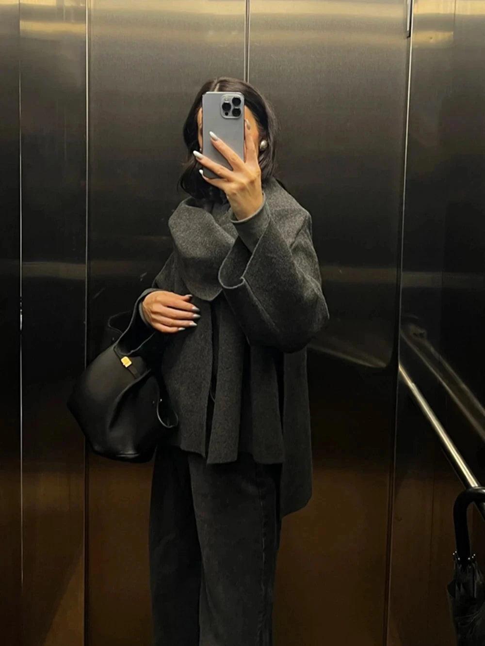 Modern Asimetrik Yün Pançomuzla zahmetsizce şık ve rahat kalın. Benzersiz dökümlü bir siluetle tasarlanan bu panço, kış gardırobunuza şık bir dokunuş katar. Çok yönlü kesimi ve sıcak tutan hafif malzemesi, onu soğuk günlerde kat kat giymek için ideal bir seçim haline getirir. Günlük gezintiler için mükemmeldir veya görünümünüze sofistike bir hava katar.