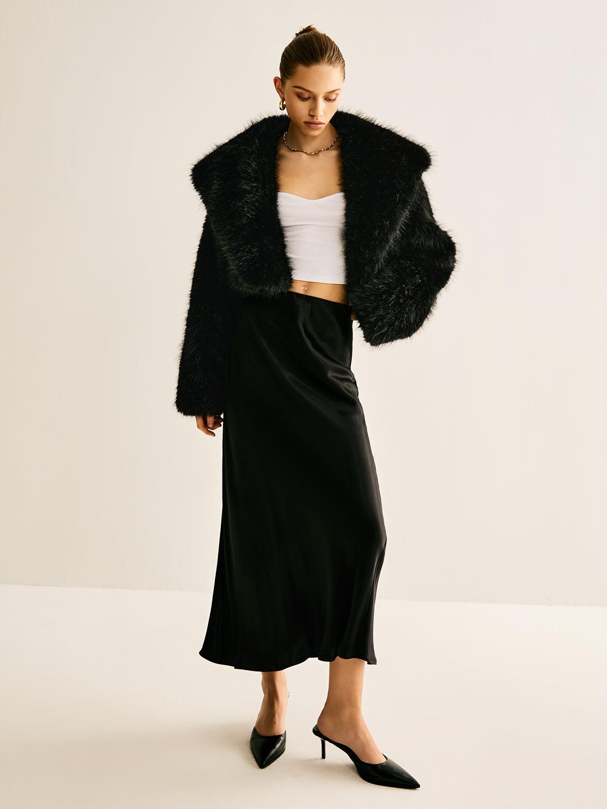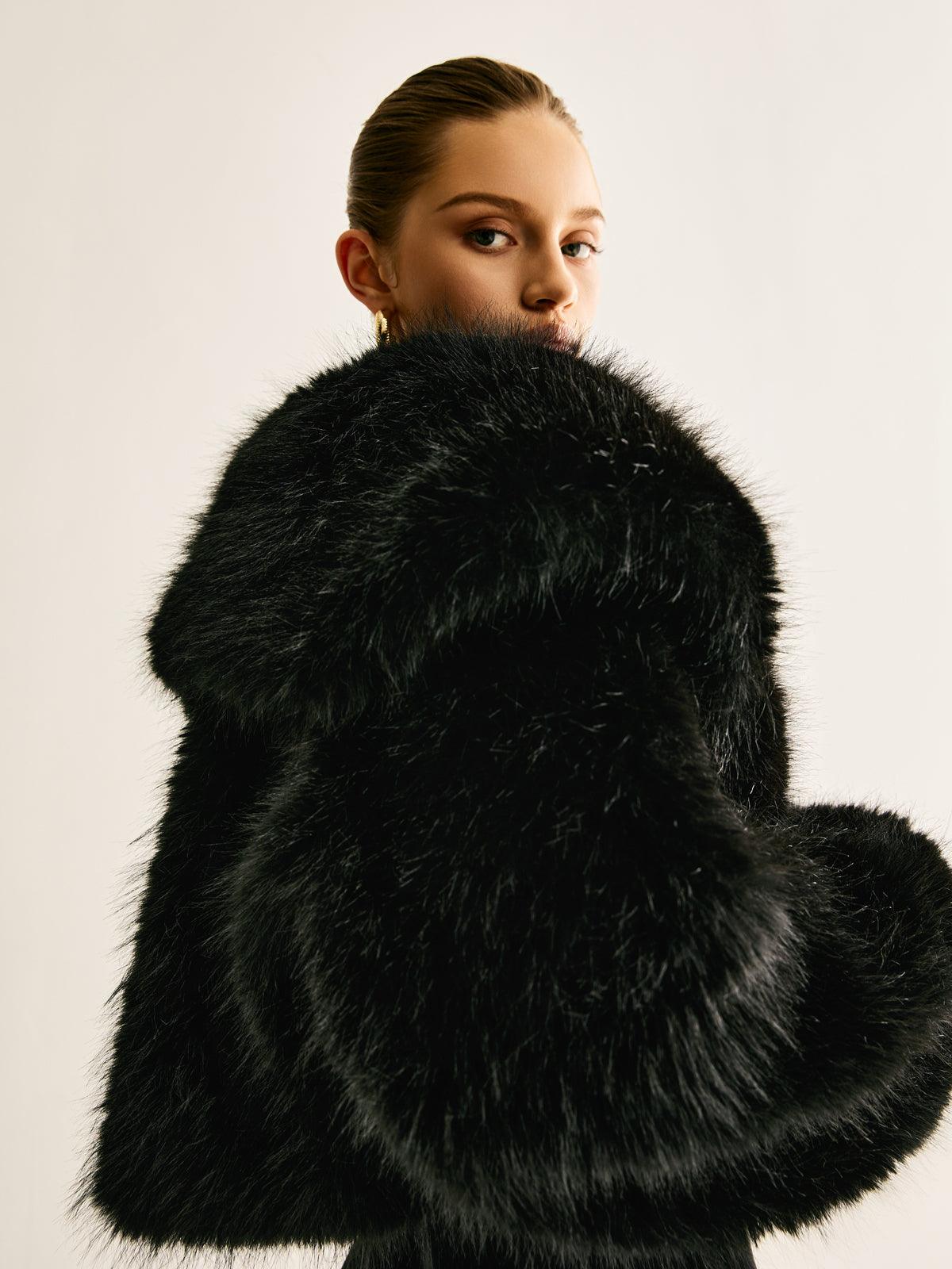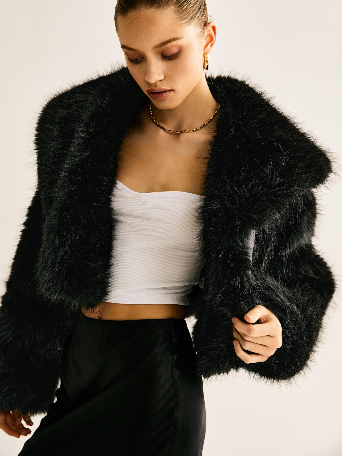 Siyah Kısa Faux Kürk