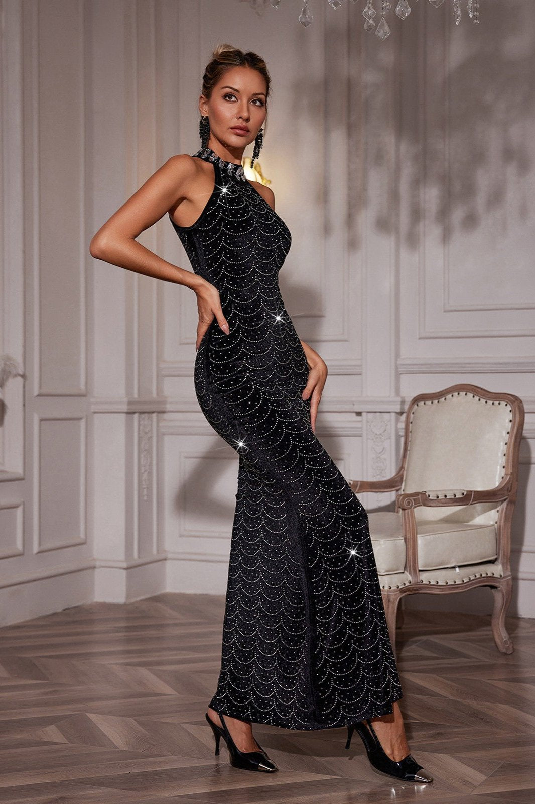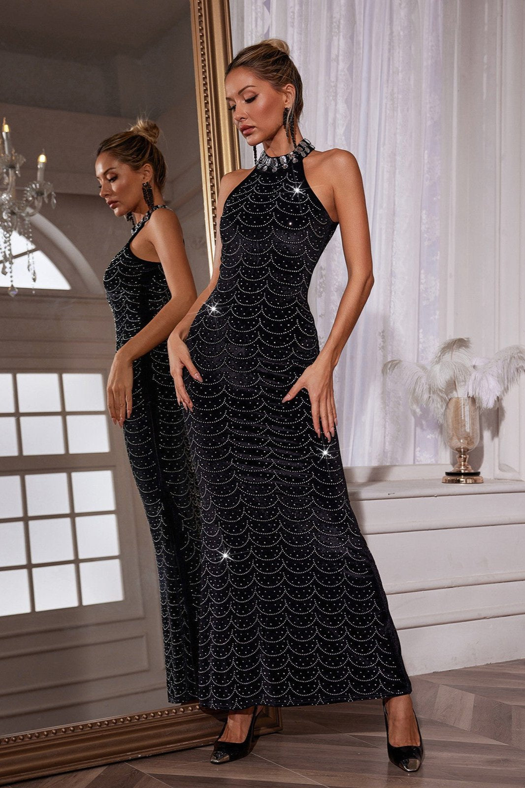 Sunita Boyundan Bağlamalı Kristal Kadife Maxi Elbise