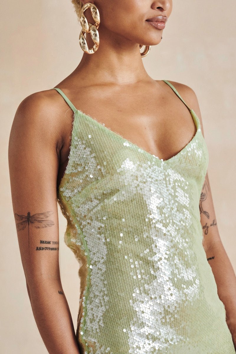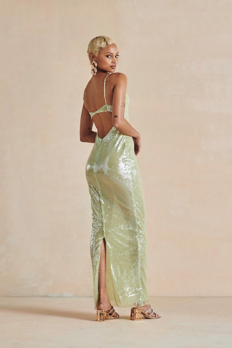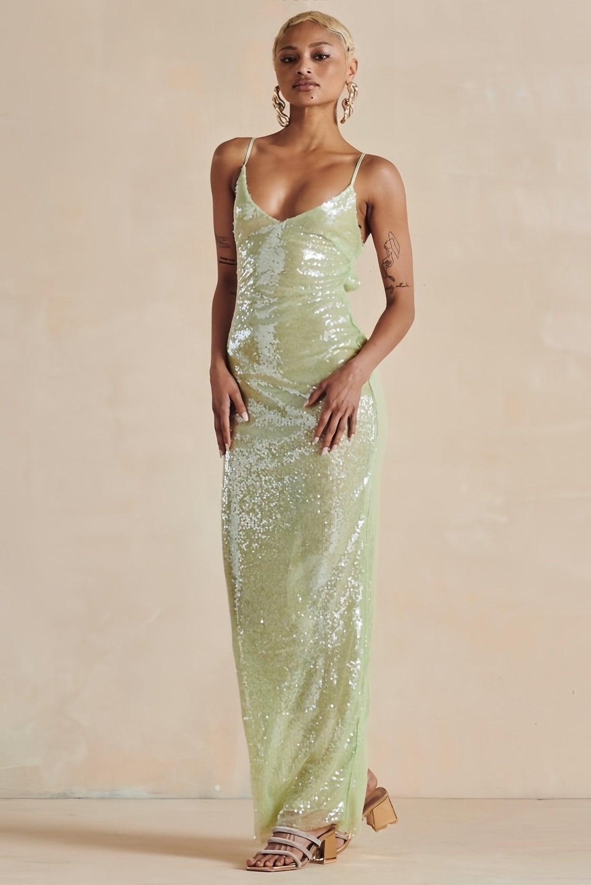 Vita Sırtı Açık Payetler Slip Maxi Elbise